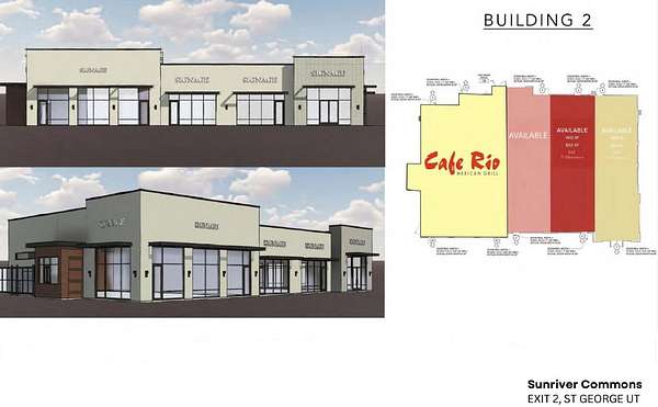 The construction has begun and Starbucks and Cafe Rio have locked in their spot! This incredible opportunity to join other national retailers at ground zero of the Sun River Commons shopping era! Smith's Marketplace, Del Taco, In&Out, Cafe Rio, Les Schwab and Auto Zone have all called their spot! In building 1 there is just one spot left approx. 1900 SQFT. In building 2 where Cafe Rio will set up shop - there are 3 spaces approx. 1455, 1465 &1475 sqft available. Listing information deemed reliable buyer to verify. Please call for details.
