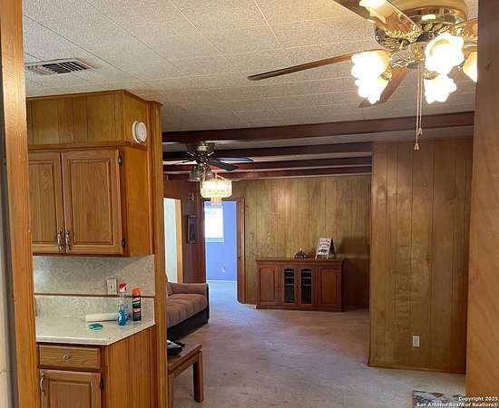 No HOA! Rare opportunity to own 9.81 unrestricted acres featuring two homes, ideal for multi-generational living, rental income, or a private retreat. The main residence is a charming 3-bedroom, 2-bath stone home offering two spacious living areas, a large utility room, and is truly move-in ready. Enjoy outdoor living on the 16' x 25' covered back porch, perfect for relaxing or entertaining. Recent upgrade includes a new AC system installed in 2023. Double-pane windows throughout. Property also features a 3,000-gallon concrete cistern with well house. Two car garage with additional ample parking and a circle drive. The acreage is well-equipped with a large 20' x 52' barn and a 36' x 36' workshop/outbuilding, providing ample space for equipment, hobbies, or livestock. In addition, the property includes a 2015 double-wide manufactured home with a spacious living area, a hall office nook, 3 bedrooms and 3 bathrooms, and a large covered deck, offering excellent flexibility and income potential. Peaceful country living with room to roam, yet endless possibilities-this is a must-see property!