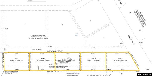 Est $314/moAll offers are subject to the provisions of W.S. 15-1-112 and/or local laws pertaining to real property liquidation, which requires three consecutive weeks of public advertisement for all potential sales prior to acceptance of offer and closing. Level ground, great access, zoned light industrial with utility services available. Perfect for personal shop, small business or storage building. High traffic with the recent Airport growth. Only five lots available.