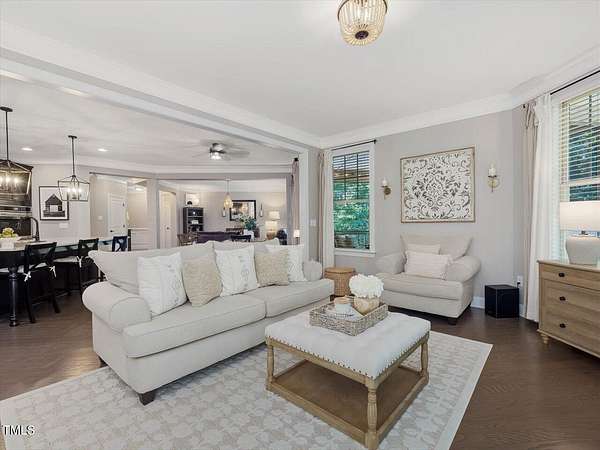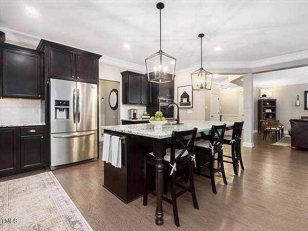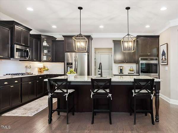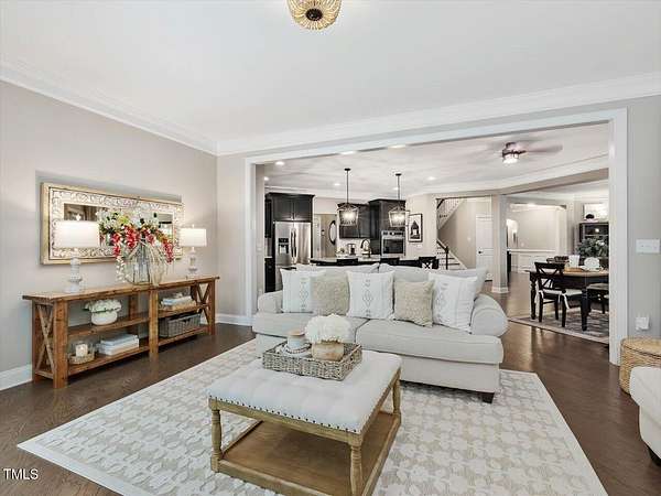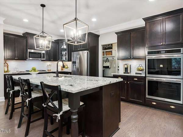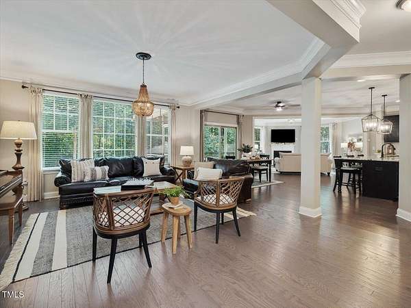 Back on the market to no fault of the sellers. Home, termite, and radon inspections complete & available upon request. Stunning 5BR/4.5BA Estate in Gated Section of Chapel Ridge! Nestled in the prestigious Estates of Chapel Ridge, this beautifully updated 4,334 sf home offers refined living on a private 1.5-acre lot. Flooded with natural light, the interior features gleaming hardwood floors, intricate molding, and a brand-new front door for added curb appeal. Freshly painted throughout, with new Red Oak hardwoods on the stairs, plus new carpet in all bedrooms. The gourmet kitchen is a chef's dream-boasting stainless steel appliances, granite countertops, new backsplash and lighting, custom Maple cabinetry with new hardware, island, and pantry. Retreat to the luxurious main-level owner's suite with spa-inspired bath and large walk-in closet. A first-floor guest suite with full bath adds flexibility. Upstairs, generously sized secondary bedrooms offer ample space for all. Exterior upgrades include newly sodded and seeded backyard and side yard, along with freshly power-washed exterior, driveway, and sidewalks. Located minutes from historic downtown Pittsboro, UNC-Chapel Hill, and UNC Hospitals, this home blends elegance, comfort, and convenience in one exceptional package.