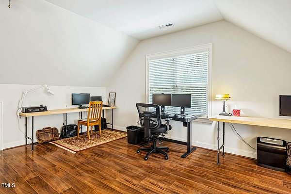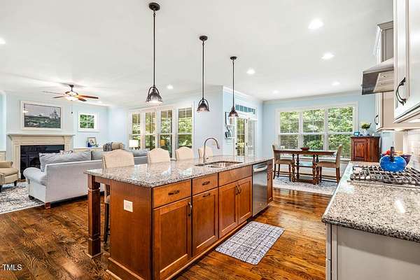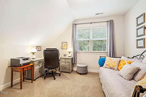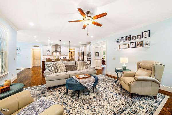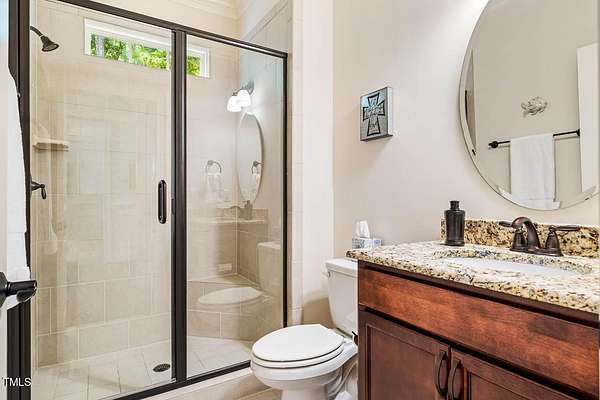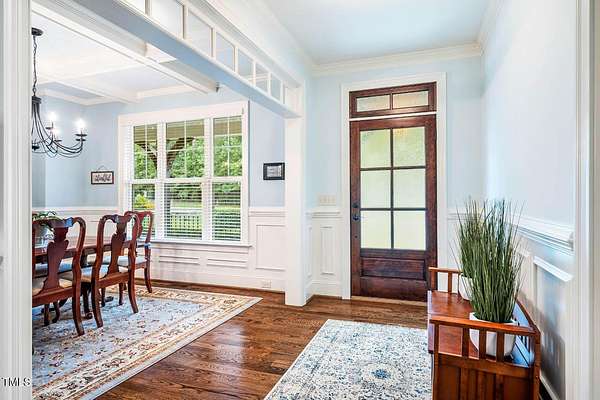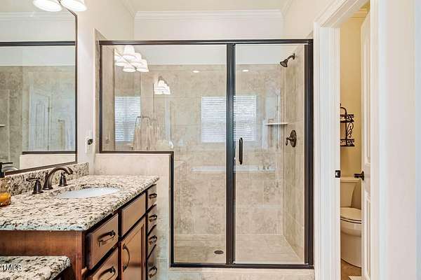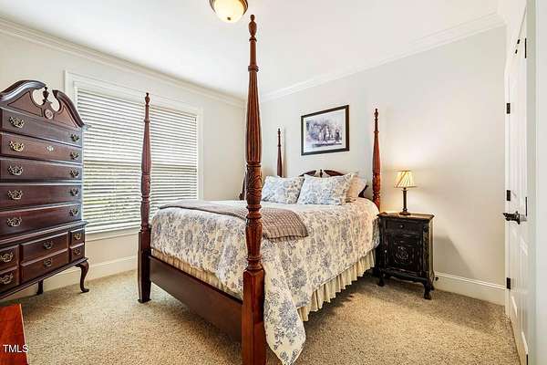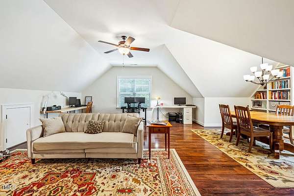 Welcome to your turn-key dream home! Looking for a beautifully maintained, move-in ready home with every detail already perfected? Look no further, this is the one. Situated on nearly 2 private wooded acres, this stunning property offers peace, relaxation and plenty of breathing room just 5 minutes from 15-501 and minutes from the heart of Chapel Hill. From the moment you arrive, you'll notice the pristine landscaping, thoughtfully designed walkways, and established yard. The interior shines with craftsmanship in every room: 8'' baseboards, deluxe 4'' trim, shadow-box molding, transom windows, beadboard drop zone & wainscoting + only 2 steps entry from garage for easy access. Every closet features custom wood shelving systems, offering both beauty and functionality. The main level boasts spacious guest-floor living, complete with both a luxurious primary suite and a separate guest suite (opposite side of home). The primary suite features dual walk-in closets that are exceptional. The heart of the home is an open-concept great room and gourmet kitchen, highlighted by real hardwood floors, a huge center island, and seamless flow to the screened porch and deck overlooking a picturesque fire pit - perfect for entertaining or relaxing in your serene backyard! Upstairs, you'll find two additional bedrooms, a cozy media loft, and an expansive bonus room with charming built-in shelves + 4 cleverly hidden attic areas providing discreet storage for seasonal and keepsake items. Located in a quiet, 28-home community right on the edge of Chapel Hill -with low Chatham County taxes- this homes location combines peaceful living with unbeatable convenience. Enjoy easy access to: UNC Hospitals (15 min), Southern Village Parks, the NC Botanical Gardens, Jordan Lake, Downtown Carrboro, Fearrington Village, RDU Airport (30 min), entertainment and events at Playmakers Theatre or Kenan Stadium. Don't miss your chance to own this beautifully upgraded home in an ideal location. Schedule your visit today - homes like this don't come along often!