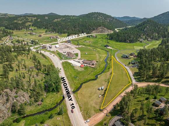 Taking back up offers! One acre of opportunity awaits at the entrance of this peaceful subdivision, nestled near the scenic Three-Forks area where US Hwy 16 and Hwy 385 intersect, just outside Hill City, SD--the heart of the Black Hills. This prime location offers excellent visibility and easy access, making it perfect for a variety of uses. Surrounded by a community of vacation rentals, it could be the ideal site for a cozy retreat, a charming cabin, or even a shared gathering space or your own vacation rental. The area sees a steady flow of travelers, offering potential for those seeking a home base close to local attractions. A nearby creek adds to the picturesque setting, making this property a serene yet accessible choice. Equipped with electricity on-site and access to the subdivision's community water well, this level lot is ready for your vision. Whether you're dreaming of a tranquil getaway or a welcoming haven for friends and family, this property is ready to make those dreams a reality!