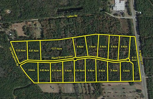 $500k dropEst $25,435/moRare ready-made development with most of the work already done for you just 18 minutes from Mt. Pleasant. There are sixteen 5+ acre lots, a larger 13+ acre lot, and a 6+ acre tract that separates the development from Highway 17. The entrance is currently off of Old Georgetown Rd but could be relocated to Highway 17. with a dividing Road infrastructure already in place and lots were granted septic approval around 2007. Seller Financing Available!