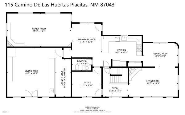 From I-25 Go east toward the mountain, 7 miles into the village, take Camino De Las Huertas on the left, go about 1.4 miles to home on the west side, Corner of Camino Las Huertas and Las Brisas.