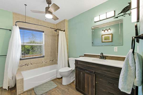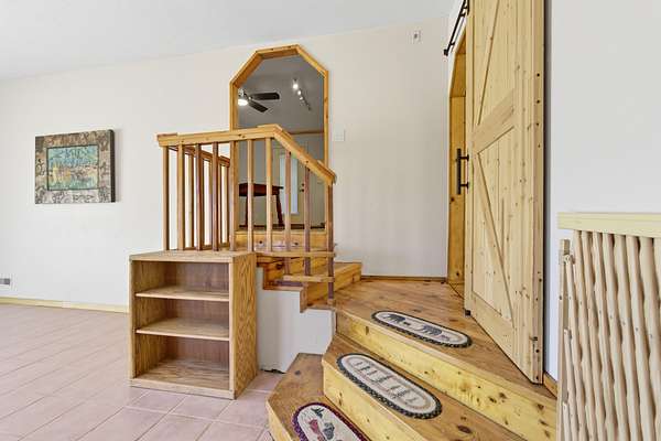 - Breakfast Bar, Ceiling Fans, Entrance Foyer, High Ceilings, Home Office, Kitchen Island, Main Level Primary, Multiple Living Areas, Multiple Primary Suites, Tub Shower, Walk In Closets