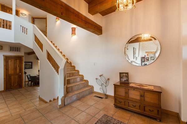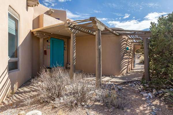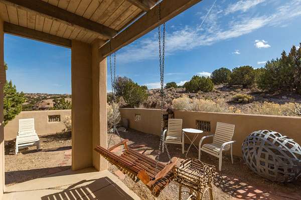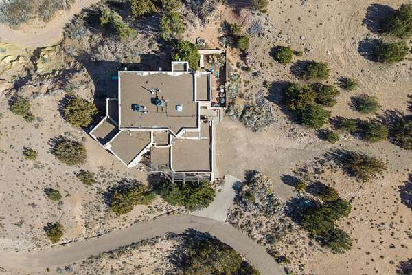 From I25, take exit 242 east to Placitas. Follow 165 to Tierra Madre road and turn north. Tierra Madre becomes Camino Barranca. Follow to Calle Chamisa and turn right. Property will on on right on the hilltop.