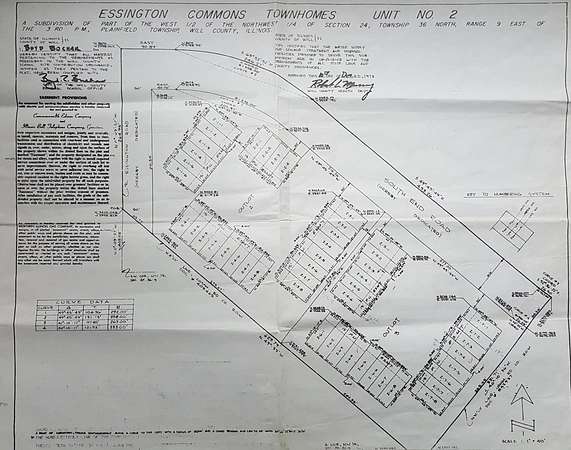 City of Joliet has clearly communicated that they will pave the balance of South End Road at time of buyer annexation & approval if buyer would like to annex the propertyExceptional development opportunity to build the final phase of 22 P.I.N.'d residential townhome lots in Essington Commons, 1.95 acres consists of 22 platted-approved and P.I.N.'d lots for fee simple townhomes, each P.I.N.'d lot approximately 21x66 with open buffer surround on separate P.I.N., 2 story plans average 1350-1550 square feet, gravel Township road with circular cleared center in place, mature wooded perimeter for privacy, public sewer & water with all utilities to site, less than 1 mile from I-55 full access at Route 30 tucked far back from all road noise, close to abundant shopping and dining at Boulevard Place and Louis Joliet Mall, Essington Commons is serviced by Plainfield School District 202, current platting includes two 8 unit buildings and one 6 unit building in a hourseshoe configuration with centralized parking at center, property sits directly across from Village Park and acres of green open space, developer relief property tax rate $547 total, list price reflects $10,905 per townhome lot, there are 23 lots total which includes 1 common space lot, property currently buildable as Unincorporated Will County-Plainfield Township or can be annexed to Joliet and re-image.
