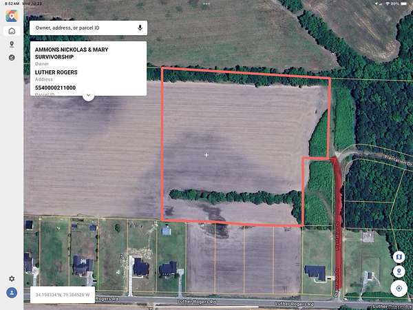 Est $1,010/moBeautiful Country Homesite in city limits of town, but rural enough to live the quiet country life most of us crave! Luther Rogers Road has long consisted of some of the nicest homes in Marion. Just shy of 9 acres will allow plenty of room to grow and expand your family homestead. The tract is almost completely planted in row crops (corn just harvested) at this time. Public water and sewer are both available to the property! The access road (Plantation Drive) is owned by the City of Marion and is scheduled to be paved in the very near future. Vast majority of the property is Goldsboro loamy fine sand. Tract cannot be subdivided, and is restricted to 2000sq.ft. Or larger stick built homes. Barndominiums are approved as well!