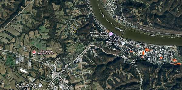 From downtown Maysville, take US 68 (West 2nd Street) toward Washington. Turn right onto Clark's Run Road, then left onto Jersey Ridge Road. Turn left into the Tara Subdivision onto Platinum Drive. Follow Platinum Drive to the end; the property is located beyond the cul-de-sac. See plat and aerial for approximate boundaries.