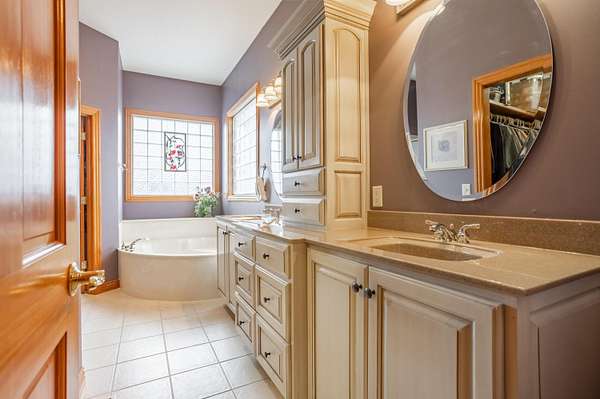 - Granite Counters, High Ceilings, Raised or Tiered Entry, Soaking Tub, Walk-In Closet(s), Walk-In Shower, Wired For Sound, w/ Hookup