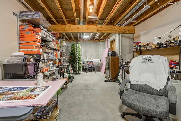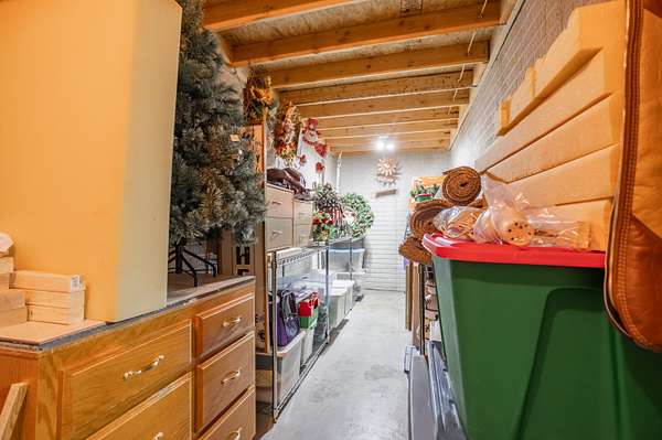 - Concrete, Exterior Entry, Finished, Full, Interior Entry, Storage Space, Walk-Out Access