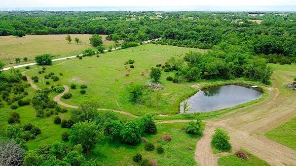 Spectacular rolling hills with a scenic mix of mature trees, open pasture, and a private pond with a dock make this property ideal for both recreation and a future homesite. Multiple elevated build sites offer peaceful views overlooking your own pond. Outdoor enthusiasts will appreciate the excellent hunting and recreational potential, with frequent whitetail activity, natural funnels, and space for food plots or feeders. Enjoy hunting, fishing, ATV riding, camping, or target practice, all on your own property. A new gravel driveway and culvert are already in place, providing easy access to the property and leading directly to a new 20 x 30 outbuilding featuring a 10' tall garage door, and a 7' access door-perfect for storing ATVs, hunting gear, boats, or equipment. Located just minutes from Hillsdale Lake, you'll have quick access to some of the area's best fishing, while still enjoying an easy commute with convenient access between I-35 and Hwy 169. Private, peaceful, and versatile-use it recreationally now or build your dream home overlooking the pond in the future.