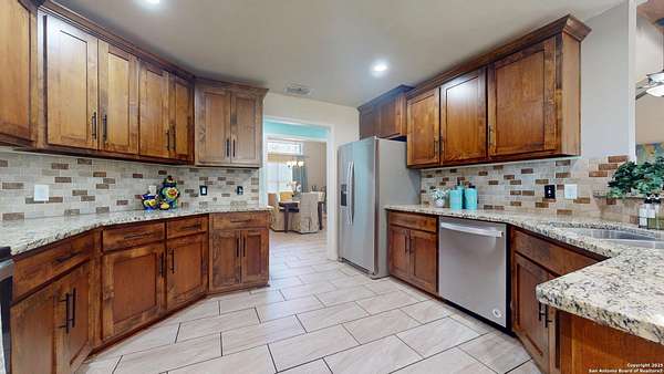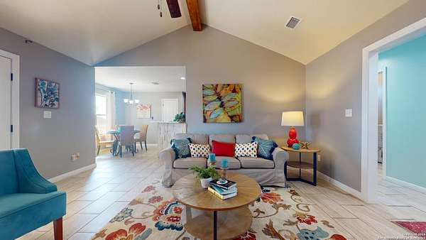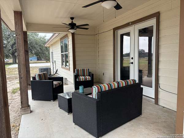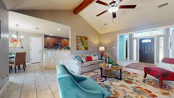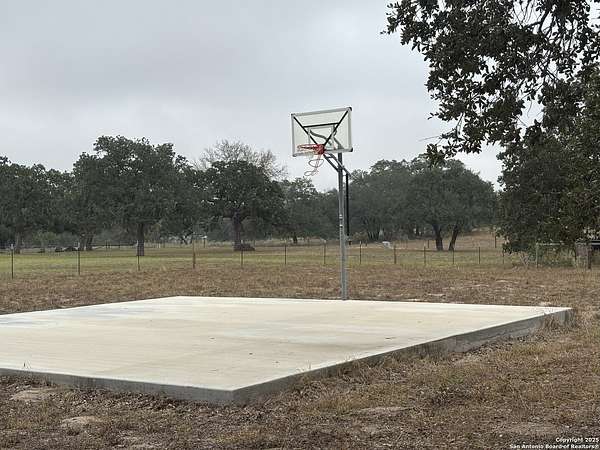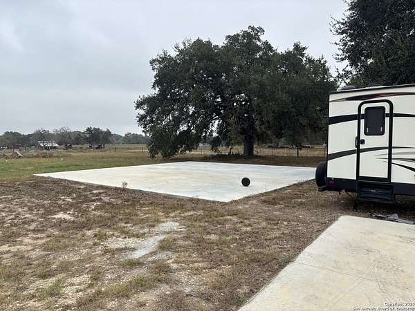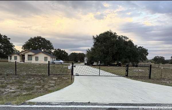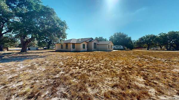 If you love the outdoors, but still want to enjoy city life, this is the place for you. Just a few minutes away from downtown Pleasanton and short drive to San Antonio. Nestled among huge mature oak trees on 4 acres in a Texas setting, this fully fenced property offers endless possibilities for gardening, outdoor activities space for your pets, chickens, whatever. Has a fully paved Driveway, there's even a 30' Basketball Court and a 40'x40' cement Slab just waiting for your addition of a garage, barn, workshop. 10'x16' Covered Patio is for enjoying those peaceful evenings outdoors. The Primary Bedroom has a sitting area perfect for a home office. Kitchen offers granite countertops, a self-cleaning oven, dishwasher, and a refrigerator that convey. Well Water, Septic, Water Softener and seller will convey the Starlink Satellite and Receiver offering high speed Internet.