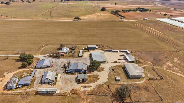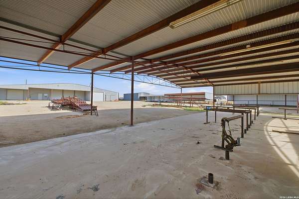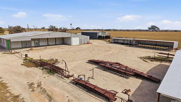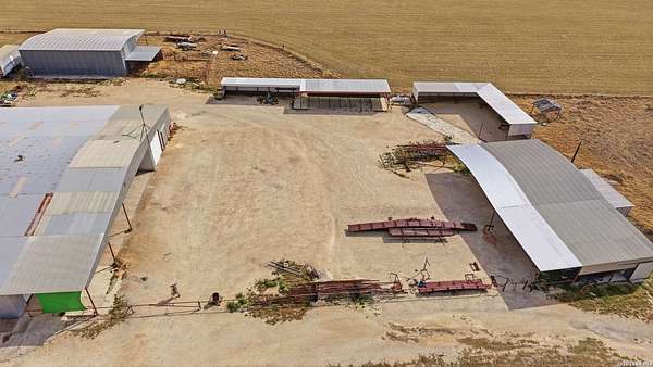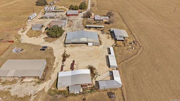 3.36-acre commercial and farm & ranch property featuring approximately 14,500 square feet of total improvements, including an 8,000 SF enclosed 80' x 120' warehouse/shop with five overhead doors, three slider doors, three walk doors, and a 20' x 30' interior office space, plus a 1,600 SF open-roof extension for additional covered workspace. Four additional open-style buildings provide flexible covered storage and equipment parking: 30' x 75' (2,250 SF concrete floor), 15' x 80' (1,200 SF dirt floor), 20' x 50' (1,000 SF concrete floor), and 10' x 45' (450 SF concrete floor). Electric and water utilities connected. The property also offers approximately 40,000 SF of stabilized road-base yard, ideal for equipment storage, fleet parking, or material staging. Property and acreage include the road from buildings to FM 536. Available for sale or lease.