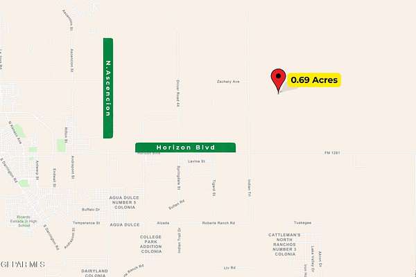 Est $111/moOwn approximately 0.69 acres of land in the far east Horizon City area! This unimproved parcel is located off Labadie Road in an undeveloped section offering wide-open desert views and privacy. Situated approximately 1.6 miles north of Horizon Blvd and about 4.6 miles east of N. Ascension Street, this property is ideal for long-term investment, land holding, or future development potential as growth continues to expand eastward. If you are looking for affordable acreage outside the city's developed core with future upside potential, this could be the opportunity.