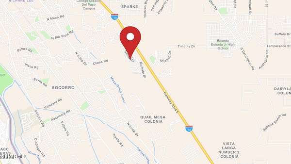 Great opportunity to invest in a rapidly growing area of East El Paso/Socorro! This property consists of two combined lots totaling approximately 0.50 acres, offering ample space for future development or a custom build. The area is experiencing continued growth, with paved roads being developed and sewer lines expanding nearby--making this an ideal time to secure land before values continue to rise. Conveniently located less than 1/2 mile from Interstate 10, providing quick access for commuting, shopping, and everyday amenities. Whether you're looking to build now or hold as an investment, this property offers strong potential in an up-and-coming corridor. Boundaries shown in photos are approximate. Buyer to verify utilities and zoning.Don't miss this opportunity to get in early in a high-growth area! Google Coordinates: 31 degrees 38'49"N 106 degrees 14'17"W