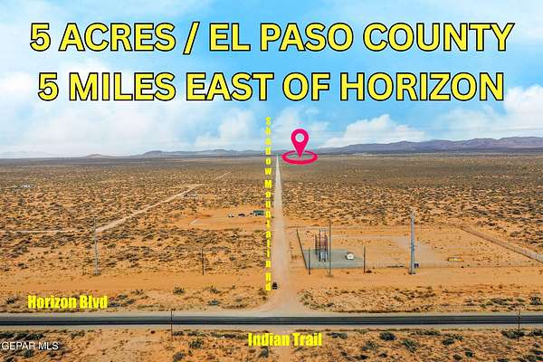 GREAT LOCATION & GREAT PRICE for 5 Acres! Don't miss this opportunity to own west Texas land near Shadow Mountain Lake Rd and Horizon Blvd. Invest in Land today as the city continues to expand. No zoning restrictions. CASH ONLY.