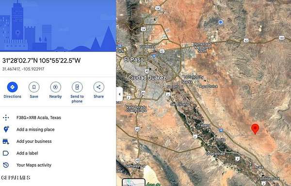 Est $220/moHere is your private piece of Texas! Perfect for off-grid living or property investment, this 20-acre parcel is located in Sunset Ranches, 11 miles from I-10, Acala Road Exit. Utility options are primarily hauled water, solar panels, propane, septic and satellite. Cellular phone service with certain carriers does work here! See videos for a full view of this gorgeous property! Photos and driving directions are provided for access. Coordinates: 31.469355 degrees N, 105.922418 degrees W No designated address yet. All dirt road off I-10. Call today for more information!