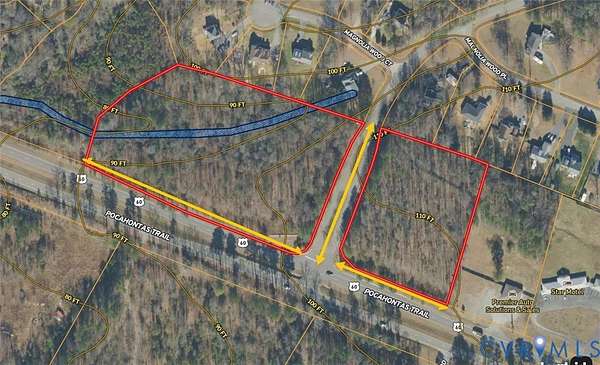 Strategically located just 2 miles from the Bottoms Bridge Exit, the property benefits from excellent accessibility and strong traffic flow. The offering consists of one parcel on the westbound side of Route 60. The parcel is split by public access to a neighborhood giving both sections valuable road frontage-approximately 650 feet and 315 feet, respectively-providing outstanding visibility and multiple access points. Each section makes a corner on Route 60. The land is serviced by county water and sewer and the county is actively working to improve water service to 12 inch water line. Current water line is 8 inch with gravity sewer. The Bottoms Bridge exit features the VCU Health Emergency Center at New Kent as well as national retailers such as McDonalds, Starbucks and Food Lion. The new Robbins Creek subdivision is a planned 129-lot residential development located in New Kent County, Virginia is less than a half mile from the site. The new The Bottoms Bridge Service District (renamed to Commece Corridor) is a designated growth area in New Kent County, VA, located along Route 60 (Pocahontas Trail) from the Chickahominy River to the Star Motel, and along Route 249. It acts as a commercial and residential hub featuring utility infrastructure, a new fire station, and is seeing active development. *Buyer to verify zoning, utilities, lot dimensions, and intended use.