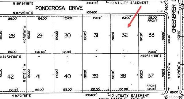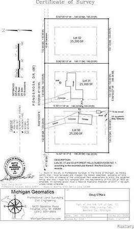 Rare opportunity to own one of the final buildable lots in a desirable, established neighborhood just north of Cadillac. Located at 7136 Ponderosa Dr (Lot 32), this 0.58-acre parcel sits on a paved road surrounded by well-kept homes-offering both privacy and long-term value. Whether you're planning your dream home or a spec build, this lot provides the ideal combination of size, location, and accessibility. Electric is available at the road, making development straightforward. Vacant land in mature communities like this is becoming increasingly scarce. Don't miss your chance to secure a prime homesite before it's gone.