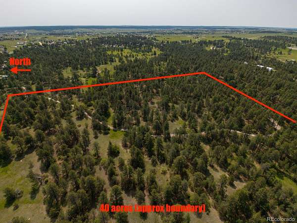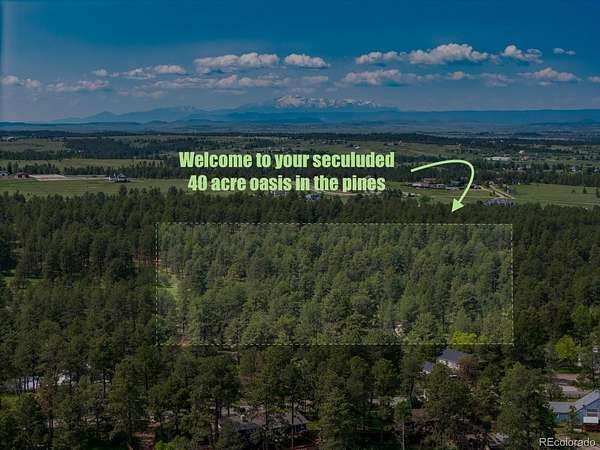 Bring your dreams and build a private oasis just off paved roads and convenient to Parker or Elizabeth. Or subdivide into smaller lots and capitalize on the location and zoning of this land. WATER RIGHTS! NO HOA! "A" Zoning offers flexibility to use land for nearly any residential, or agricultural use. Much work has already been done with land development and county - please contact agent for more info. Estimated resale value of 10 acre lots estimated $600,000-750,000 each. Natural gas and electric already to property edge. Huge potential to have forested property just minutes from Parker. Road and survey already completed. The west boundary of this property is the Douglas/Elbert county line. Douglas County value with the convenience and ease of developing in Elbert County. Please do not drive onto property without permission of listing agent. Make sure to check out drone video https://youtu.be/JIKX_mV8XbU