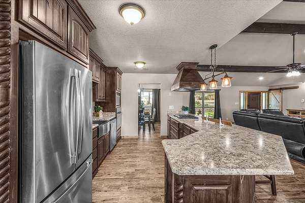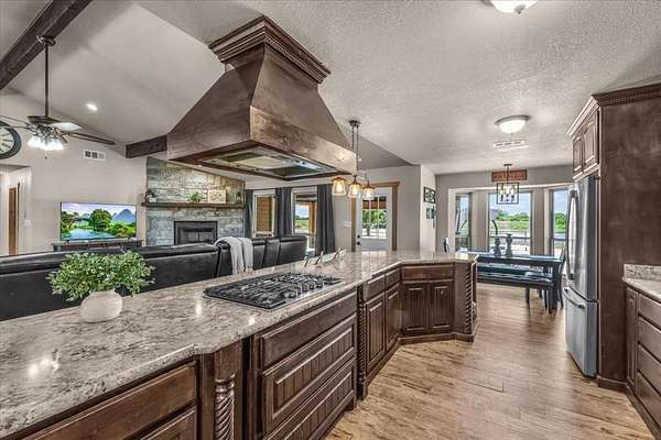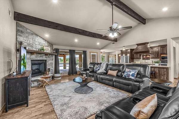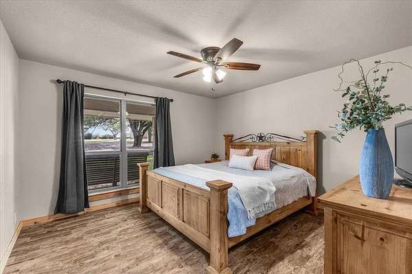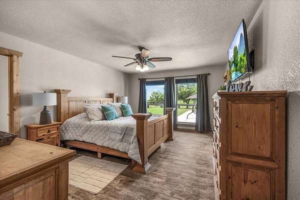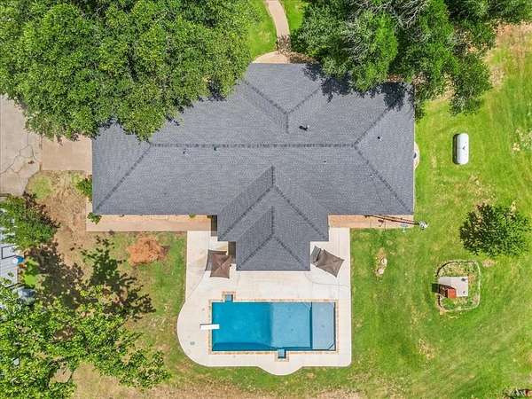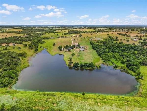 This incredible property features a guest house, pool, stock tank, barn, shop, and RV storage, all set on 38 acres of lush Coastal Bermuda grass, averaging 65 round bales per cut. Tucked less than a mile off Highway 199 in a peaceful and prime location, the main home offers 3 bedrooms, 2 baths, and 2,540 sq. ft. of beautifully, remodeled living space with wood tile floors, new plumbing and windows, an open concept design, granite countertops, stainless steel appliances, and vaulted ceilings with large beams framing views of the pool and the 7-acre stock tank. The 1,100 sq. ft. guest house includes 2 bedrooms, 1 bath, a garage, and new HVAC. The 60x60 barn is fully equipped with cattle pens, feed troughs, a squeeze chute, electricity, and water. The 40x50 RV storage has 2 50-AMP RV hook-ups, solar panels and a 20x40 awning. A second 25x30 shop includes a 2-post car lift and houses the pool pumps, well house, and boat storage, also with water and electricity. Additional highlights include a chicken coop, mature oak and pecan trees, storm shelter, electric gate, fenced and cross-fenced, water well with softener, and abundant recreational opportunities like hunting and fishing. With no restrictions, this blend of functionality, comfort, and natural beauty, this one-of-a-kind property is the ultimate Texas dream!