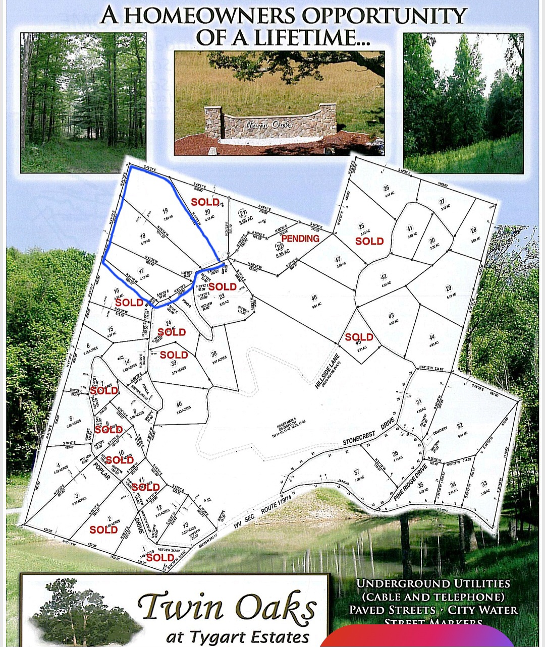 FSBO: 17.78 acres (Lots 17, 18, 19) in Twin Oaks of Tygart Estates, Poplar Dr, Grafton, WV, Taylor County. All 3 lots have been joined for property taxes and the HOA.