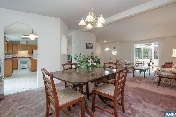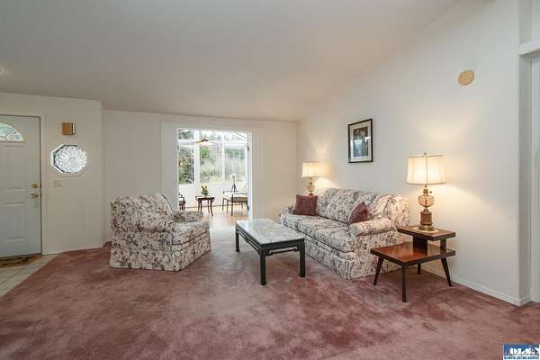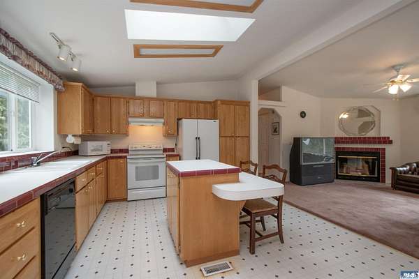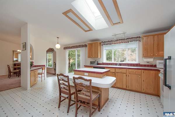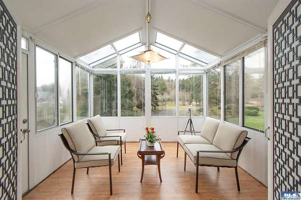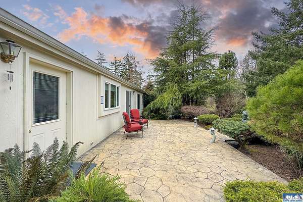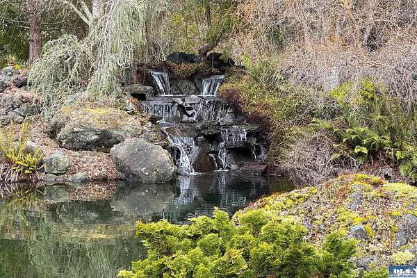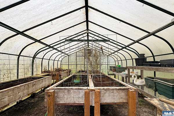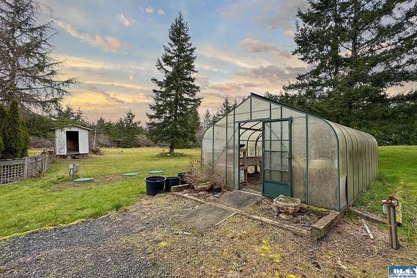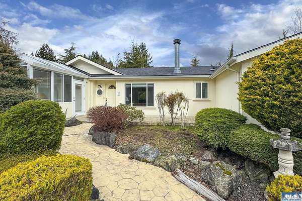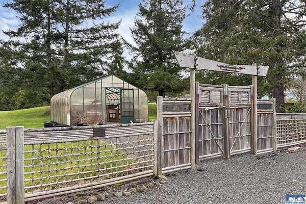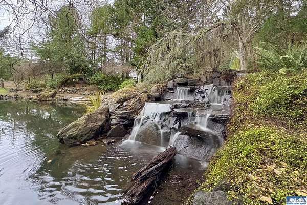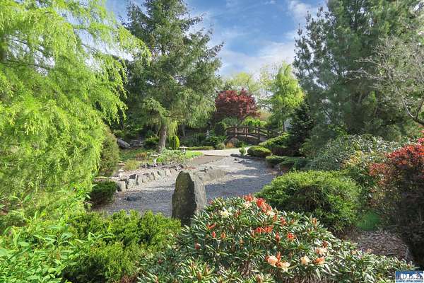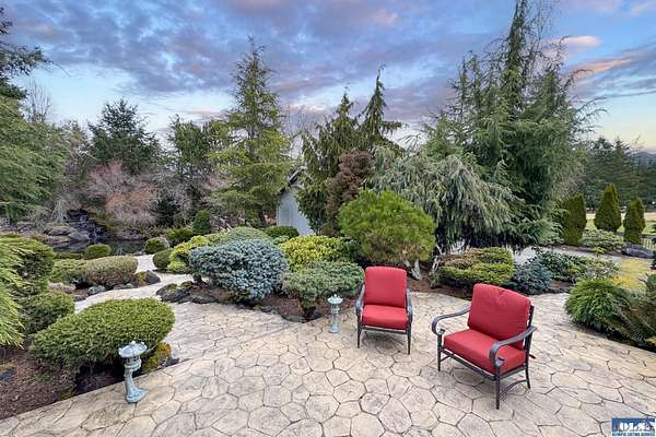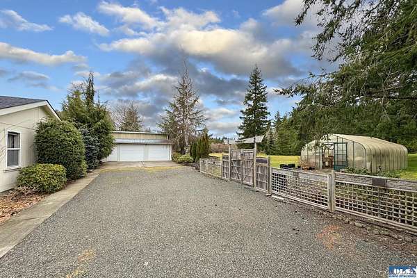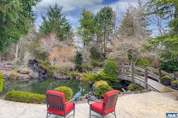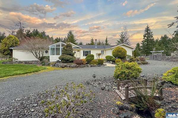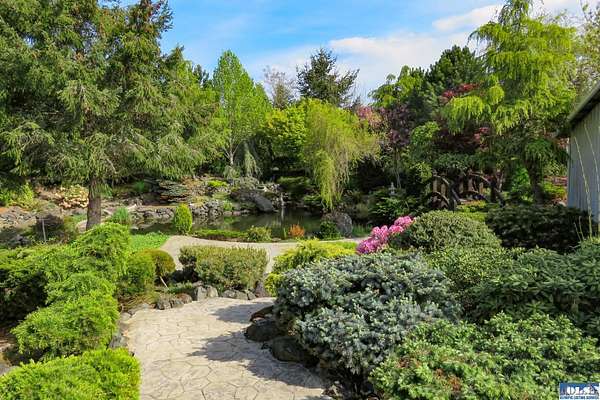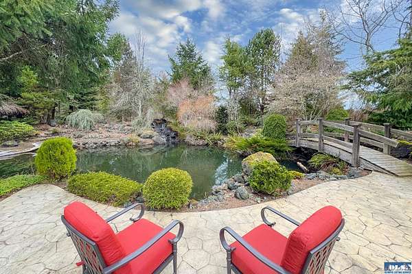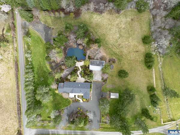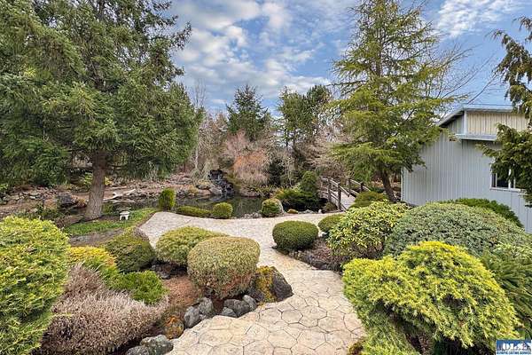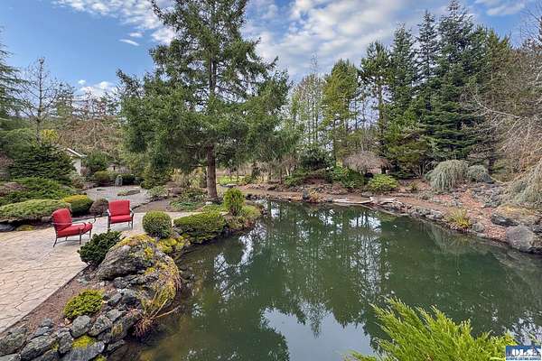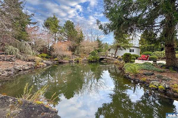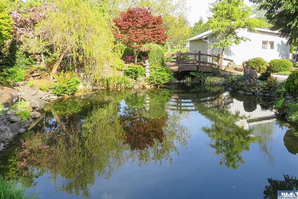 Nestled on 2.36 private acres, this impeccably maintained 2,114 sq ft home offers a seamless blend of comfort, and natural beauty. Featuring 3 bedrooms and 2 baths, the home boasts expansive living spaces including a rec room, dining area, office nook, and sun-filled sun room—perfect for both entertaining and relaxing. The kitchen is designed for both function and style, featuring a large island, room to dine, and a skylight that fills the space with abundant natural light.The generously proportioned primary suite is a private retreat, with four closets and a spa-inspired bath featuring dual sinks, a separate jetted soaking tub, and a shower. Step onto the back patio and immerse yourself in a serene, park-like setting, where a ornamental waterfall flows into a picturesque pond. A charming Japanese garden arch bridge spans the water, creating a tranquil focal point, surrounded by lush mature trees and landscaping that ensure exceptional privacy. Additional highlights include a detached two-car garage with shop area and greenhouse, ideal for hobbies, projects, or gardening. A new 40-year roof installed August 2025 provides peace of mind and lasting value. This is a rare opportunity to enjoy refined living in a tranquil, picturesque setting.