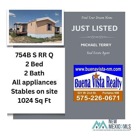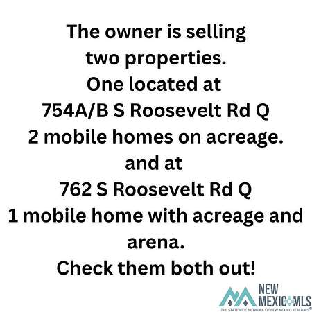 2.524 Acre Property with Two Homes, Covered Stalls &Room to Expand - Near Portales & ENMU This 2.524 acre property offers an exceptional opportunity for comfortable living, livestock care, and potential rental incomeall just minutes from Portales and Eastern New Mexico University(ENMU). Two Single-Wide Mobile Homes Included: Home A: 2 Bedrooms, 2 Bathrooms Home B: 2 Bedrooms, 1Bathroom Both homes are equipped with central air conditioning, providing year-round comfort. Equestrian/Livestock Features: Eight 45' x 15' covered stalls, ideal for horses or other livestock Ample space available to add an arena or riding area to suit your needs Additional Highlights: Convenient blacktop road access Close proximity to ENMU- excellent investment or rental potential Full RV/travel trailer hookup on-site for added versatility Whether you're an equestrian enthusiast, investor, or someone looking for a rural property with room to grow, this listing combines functionality, location, and value. Dont miss your chance to own a multi-use property with excellent access and endless potential.
