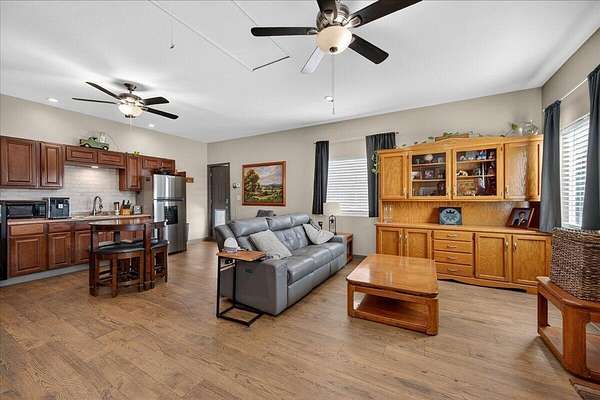 Overview Welcome to 23547 Avenue 184 in Porterville, a unique country property offering the perfect blend of rural living, income potential, and modern comfort. Situated 5.73 +/- acres planted in Washington Navel oranges, this property provides the opportunity to enjoy a productive citrus grove while living in a beautifully improved residential setting. Farm The orchard was originally planted in stages, and today the trees represent a mix of mature producing Washington Navel oranges ranging roughly from 30 to 80+ years of age (with some brand-new infill trees planted), offering established production and the character of a long-standing citrus grove in one of Tulare County's renowned citrus growing areas. The grove is equipped with solid-set irrigation and water service through Lindmore Irrigation District, along with a private agricultural well. Private Residence The residential portion of the property features a luxuriously remodeled 2006 manufactured home offering approximately 1,782 square feet with 4 bedrooms and 2 bathrooms, designed for comfortable country living. Inside, you'll find a spacious open-concept layout connecting the living room, dining area, and kitchen, with updated flooring, modern appliances, and abundant natural light. Also, included is a 400 +/- square feet completely finished bonus room with a kitchen that can be used as a possible ADU, family room, or extra bedroom (not included in gross square footage). The outdoor improvements truly elevate the lifestyle appeal of the property. The fully developed yard area includes: - Large concrete driveway and parking area - Resort-style swimming pool with water features - Covered outdoor kitchen and BBQ entertainment area - Detached guest studio or recreation space with kitchenette and living area - Workshop/storage building - Gated entry and fenced yard for privacy These amenities create an ideal space for entertaining, relaxing, or accommodating guests, all while being surrounded by productive citrus trees and open rural views. Area Highlights Located just outside Porterville and near Strathmore, the property offers the tranquility of country living while still being within a short drive of town amenities, schools, and Highway access. Whether you're looking for a lifestyle property with agricultural income potential, a family compound, or a private rural retreat, 23547 Avenue 184 presents a rare opportunity to own a working citrus grove with extensive residential improvements.