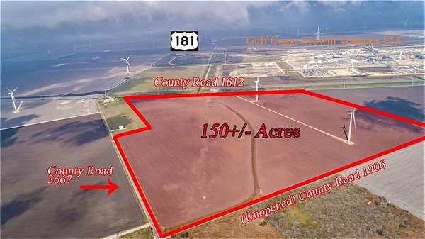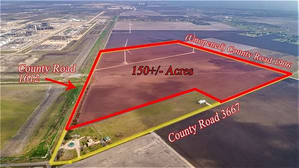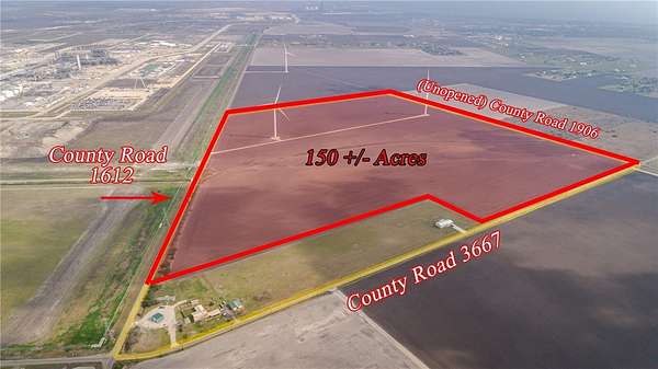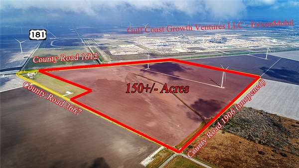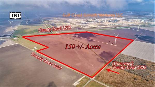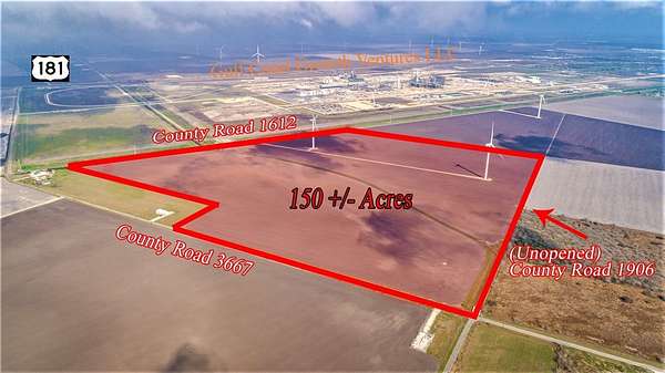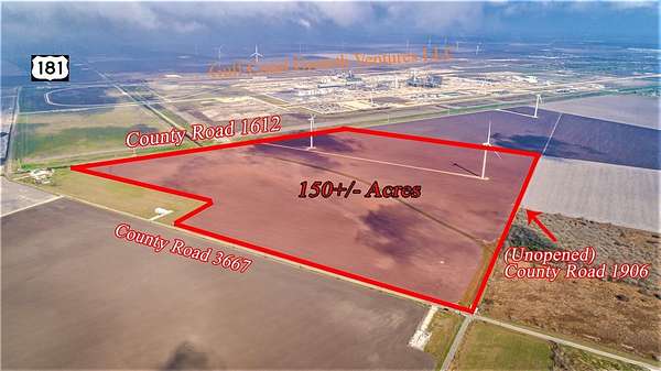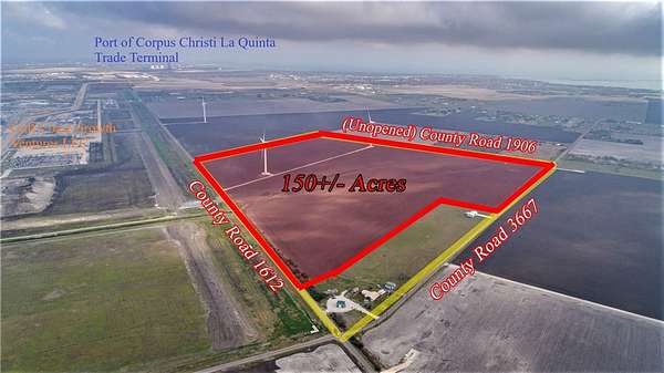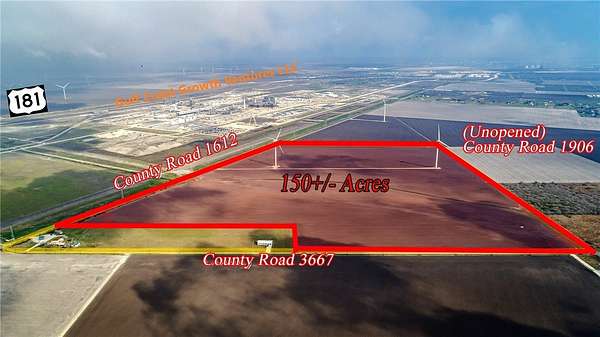 The rapidly expanding San Patricio County economic expansion continues to enhance the bright horizon. Join world-class industry titans locating near the Port of Corpus Christi's La Quinta International Trade Terminal, building large scale industrial projects & utilizing the abundant workforce for technical, high paying jobs. With CR 1612 separating this 152.55+/- acre site from Gulf Coast Growth Ventures LLC, this location stands ready for locators seeking a favorable business climate, strong incentives & great resources afforded to companies in the Lone Star State. The surface estate only of this 152.55+/- acre site sits near the intersection of CR 3667 & CR 1612 with the benefits of the unopened extension of CR 1906. The property is close to US Hwy 181, Hwy 35, Port of Corpus Christi La Quinta International Trade Terminal & Gregory. Property being sold subject to existing farm & wind leases. 10.72 Acre site w/3 homes is not included & can be purchased separately. Surface Estate Only.