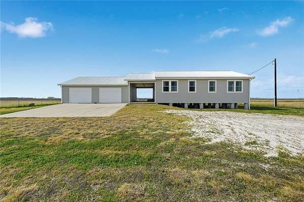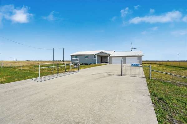 Rare opportunity to own nearly 15 acres on the outskirts of town with the convenience of being just minutes from shopping, schools, and amenities. This exceptional 14.29-acre property is fenced and cross-fenced, offering wide-open pasture land ideal for any type of livestock or animals, making it a true turnkey setup for country living. The property features a storage/work barn with electrical outlets already in place, along with a dedicated animal barn complete with five stalls, providing both functionality and flexibility for agricultural or hobby use. The home offers a thoughtfully designed open-concept living, dining, and kitchen area that feels spacious and inviting. The kitchen is a standout with a farmhouse sink, gorgeous countertops with ample prep space, breakfast bar seating for 3-4, and abundant cabinetry with pull-out drawers for maximum storage and efficiency. The living room is elevated by a tall vaulted ceiling and generous can lighting, creating a bright and airy atmosphere. The home includes two bedrooms, with one serving as a versatile flex room-perfect for a bedroom, home office, or secondary living space-along with a full bath featuring a fully tiled walk-in shower and a convenient half bath. A separate laundry room with built-in shelving adds everyday practicality. An impressive and uncommon feature is the four-car garage, connected by a breezeway and equipped with four individual garage doors, allowing easy drive-through access. An additional concrete slab at the rear enhances usability for equipment, trailers, or extra parking. This property offers the best of both worlds-room to roam, work, and raise animals, all while enjoying close proximity to town. Acreage of this size and quality, so conveniently located, is truly hard to find.