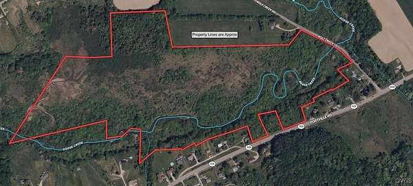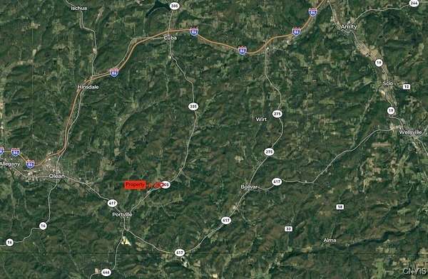 This excellent hunting and recreational property consists of 68 acres with a creek located in Portville NY, Allegany County. The land is mostly level and open with scattered shrubs and apple trees, and areas of hardwoods and pines. There are established trails throughout for easy access of the land. Dodge Creek runs from east to west through the property. This creek is stocked with Brown Trout, Rainbow Trout and Largemouth Bass. There are a couple of potential building sites on Obi Portville Road, also with frontage on Wolf Creek Road for multiple access points. The property could be used to build a home or a nice cabin, also the ability to use as farmland and pastureland as well. Whitetail deer and turkey signs throughout making this a great hunting property. Electric is located at the road. This property is in the Portville School District. All rights convey. This property is located approximately 6 minutes to downtown Portville NY, 15 minutes to Cuba NY and Olean NY, 29 minutes to Wellsville NY, 1 hour 5 minutes to Jamestown NY, 1 hour 30 minutes to Buffalo NY, and 1 hour and 45 minutes to Rochester NY.