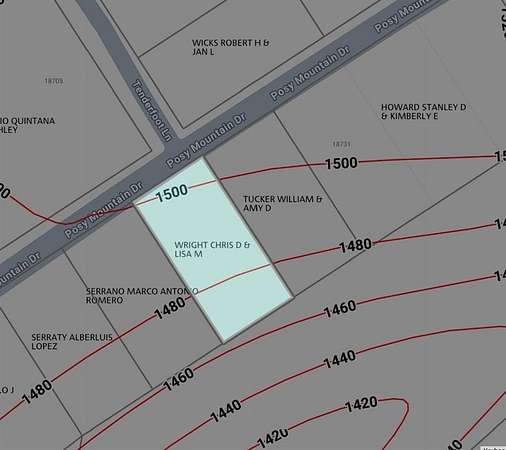2 lots down from 18731 Posey Mountain Rd. Tenderfoot ends at this parcel.