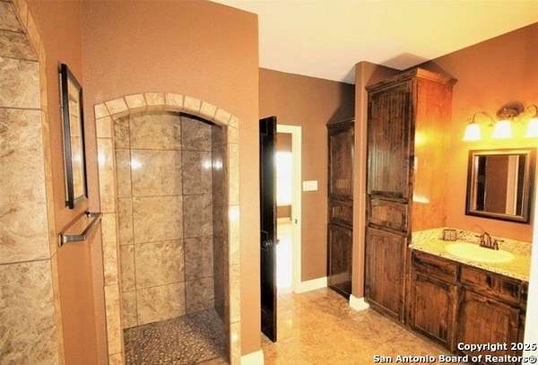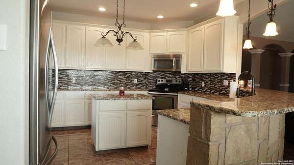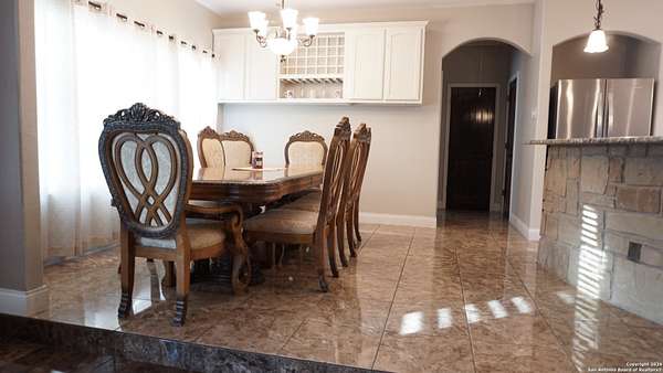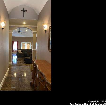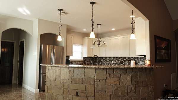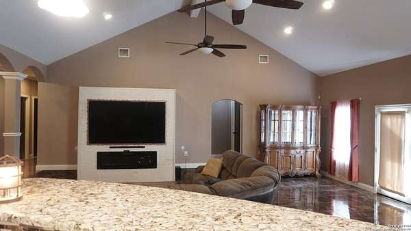GORGEOUS custom-built 4-bedroom, 2.5-bath home situated on 2.058 acres of peaceful country living! This beautifully designed residence offers an open-concept floor plan highlighted by a sunken living room and vaulted ceilings in the main living area, creating an inviting and spacious atmosphere. Built in custom made entertainment center with 86 inch TV, electric fireplace with heater and soundbar stays for the new owners to enjoy. The home features stunning natural wood cabinetry throughout, granite countertops in all areas, designer ceramic tile, elegant archways, and beautiful matching light fixtures that add warmth and cohesion to the space. The expansive primary suite is a true retreat, offering a huge bedroom and with a private bathroom with dual-entry shower. A versatile game room or office includes a wet bar, space designed for two mini refrigerators, and a private exterior entrance-ideal for entertaining, working from home, or guest flexibility. Additional highlights include stainless steel appliances, ceiling fans in every room, and a gazebo with TV connections, perfect for outdoor enjoyment. Enjoy quiet country living with ample room to relax and unwind while still benefiting from quality craftsmanship and thoughtful design throughout.