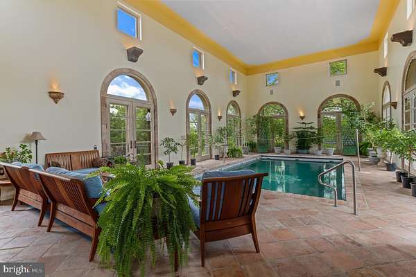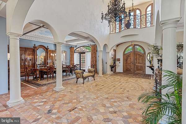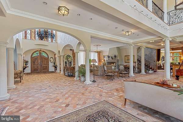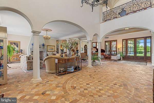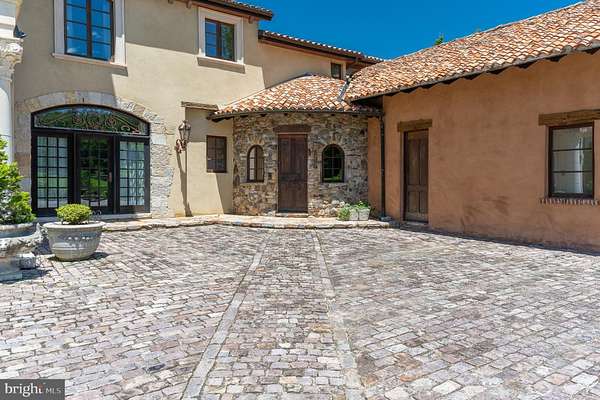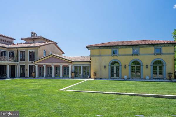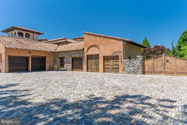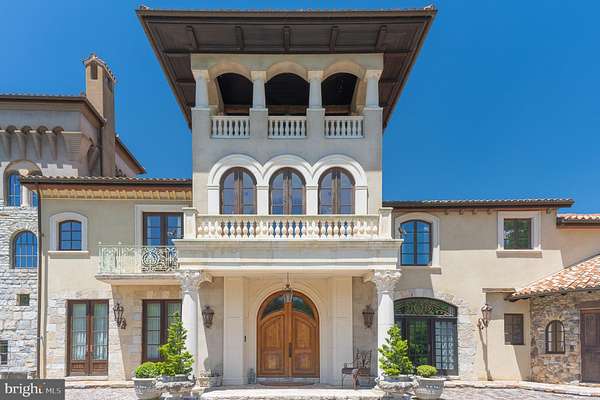 "Fine Homes & Lifestyles" cover feature! Architecturally distinguished property. Custom built estate, luxury of modern-day amenities combined with imported, antique, historic, thoughtfully resourced building materials & detail bring centuries old world charm to this extraordinary 10-acre Potomac Tuscany inspired Villa. Minutes to Washington DC. 8 to 12 ensuite bedrooms, libraries, offices, spacious gathering & lecture areas. Land your helicopter-security & privacy; entertain large gatherings-wedding venues, stone chapel replica of ancient Italian estate w/ Della Robbia inspired bell; entertain fine arts displays or performances; host concert pianist recitals; house guests who travel from abroad to attend your venue - closest to downtown Washington DC, convenient location to northern Virginia and Baltimore; minutes to golf courses hosting major tournaments; Airbnb or bed & breakfast hosts' dream property, great place for a spa, relaxing Turkish baths; NIH, medical institution or University satellite location for gatherings to further education, enrichment, group meetings & presentations, international conferences; embassy or consulate ownership, consular offices, ambassadorial residences, government embassy, serene, gated, security & privacy convenient location close proximity to DC; high-level relocation for foreign service officers; relocation consultants, international organizations & consulates; tranquil, inspiring haven to host retreats or ceremonial gatherings; bring your horses; fish-carp filled pond; grow grapes, vineyard potential; artist's inspirational getaway w/studio to display creations; serenity ,writer's escape from hustle & bustle of city ; swim laps year round "against the current" indoor pool (specially designed HVAC system to reduce humidity) enjoy a game of pool volleyball w/ friends; cook in the true gourmet kitchen boasting a spectacular Lacanche stove imported from France; gracious home family, friends & guests can enjoy. Grand property, designed & built w/integrity & genuine craftmanship. Resources, research, history, the study of light and more combined to recreate the appearance of centuries old, Medieval, European influenced architecture and culture & modern comforts for prestigious living, welcome to "Albero del Segnale" Driveway built of centuries old, repurposed cobblestones, came to this country from Europe as ballasts on sailing ships and were then used to pave city streets. Pass through the iron gates, the double stone entrance pillars capped with custom made lanterns from Italy and along the driveway lined with antique streetlamps. Greeted by the front landing made of hand-hewn antique limestone pavers from Italy and twin Corinthian limestone columns also custom made in Italy. Front doors, supported by gold-plated, hand-chiseled hinges custom made in France, spectacular classic Italian design featuring iron grillwork in the glass transoms and a working "man door," door within a door - tradition dates to Medieval times. Grand foyer drenched with natural light from 2+ story windows, welcomed many renown performers and pianists, fantastic acoustics! Every room in this grand, glorious mansion is abundant with natural light, every angle of each room has magnificent windows connecting pastural rolling views with interior. Centuries-old hand-molded antique terra cotta floors w/imprints of the artisan's fingers & hands as well as occasional animal footprints are forever defined - imprinted before the tiles dried and were fired. Solid iron balusters & railings designed for this home &hand forged in Italy & so much more! No HOA offers many potential uses