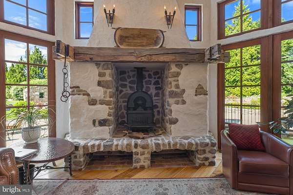 - 2 nd Kitchen, Additional Stairway, Bar, Breakfast Area, Built-Ins, Country Kitchen, Dining Area, Eat-In Kitchen, Elevator, Entry Level Bedroom, Exposed Beams, Family Room Off Kitchen, Formal/Separate Dining Room, Gourmet Kitchen, Island Kitchen, Jetted Tub Bathroom, Open Floor Plan, Pantry, Primary Bath(s), Skylight(s), Soaking Tub Bathroom, Sprinkler System, Stain/Lead Glass, Store/Office, Upgraded Countertops, Walk-In Closet(s), Walk-In Shower Bathroom, Wet/Dry Bar, Window Treatments, Wood Floors, Wood Stove