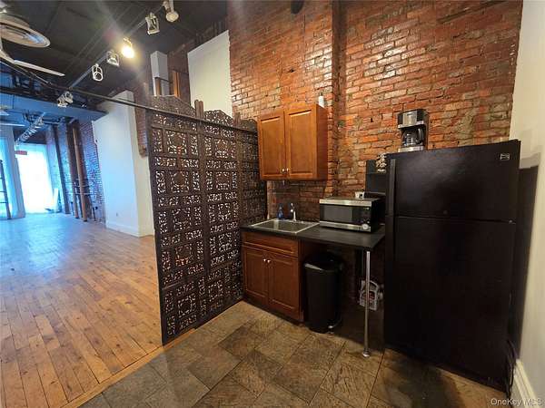 Located in the heart of Poughkeepsie's revitalized business district, the ground floor of 204 Main Street offers a quintessential "urban-chic" commercial environment. This space is ideal for a business owner looking for a blend of historic character and modern functionality. The unit covers approximately 817 square feet, designed with an open-concept layout that maximizes its footprint. The "loft-style" aesthetic is defined by original exposed brick, hardwood flooring and high ceilings. The back of the unit includes an updated private bathroom and a kitchenette/utility area for staff use. As a storefront on a high-traffic corridor, visibility is one of the property's strongest assets, including street presence with large floor-to-ceiling windows, providing natural light and significant branding opportunities for foot and vehicle traffic. Zoning allows for variety of permitted uses, including but not limited to: Boutique retail or specialty shops, Professional offices (law, real estate, accounting), Creative studios or small art galleries, Personal service businesses (barber shops, salons, or fitness boutiques). 204 Main Street is positioned in between the waterfront and train station, and Downtown, the hub of business activity. A short 10-minute walk (0.5 miles) leads directly to the Poughkeepsie Metro-North and Amtrak station, connecting the business to the broader Hudson Valley and New York City. The neighborhood features a growing food hub, with Zeus Brewing, Schatzi's Pub and Bier Garden, and Buena Ventura Restaurant just steps away, along with hundreds of apartments within walking distance.