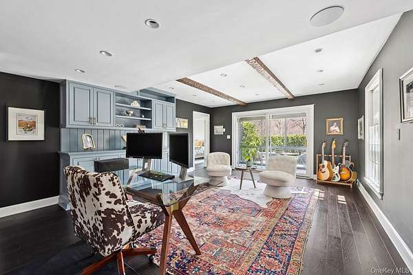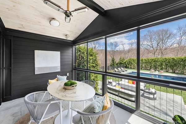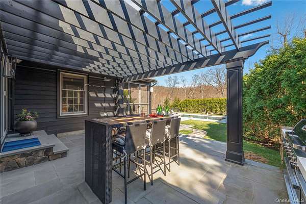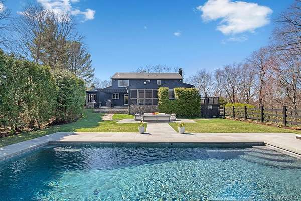 This completely renovated 4-bedroom, 4-bath Colonial is set on 3 picturesque acres at the end of a private, wooded cul-de-sac. A true turn-key offering, the home features a Control4 smart home system for easy management of lighting, security, audio/video, and climate, along with an automated and secure gate system. The gourmet eat-in kitchen is the heart of the home, showcasing new countertops, high- end stainless steel appliances, and sliders that open to the patio and backyard-perfect for indoor/outdoor living. A sun-filled breakfast area creates a bright and inviting space. The expansive patio features an outdoor grill with rotisserie, cooktop, and refrigerator - ideal for dining al fresco. Sunlit interiors highlight hardwood floors throughout, complemented by quality finishes including French doors and detailed moldings. The center hall layout includes a beautifully scaled living room with fireplace, formal dining room, a spacious family room, and a full bath. Updated interior lighting throughout and landscape lighting enhance both the home and the property. A first-floor guest ensuite provides comfort and privacy for guests, while an adjacent versatile room - ideal as a home office, library, or playroom - offers access to a heated, screened-in porch with seasonal glass windows to switch out for the colder months. On the second floor, the spa-like primary suite features a generous walk-in closet, a freestanding soaking tub, radiant heated floors, and a smart toilet. Two additional bedrooms and a full bath complete the second level. Additional features include a whole-house Generac generator and an automatic sprinkler system. The fully fenced backyard is a private oasis with a heated PebbleTec pool, new stone pathways, outdoor shower, and a Bocce ball court - perfect for outdoor gatherings. The seamless flow between the kitchen, patio, and outdoor spaces makes this home ideal for entertaining. Enjoy a quiet retreat in sought-after Pound Ridge, with easy access to Scotts Corners, Bedford, and Cross River Plaza. Nearby Ward Pound Ridge Reservation is within walking distance and offers over 4,000 acres of trails for hiking and biking.