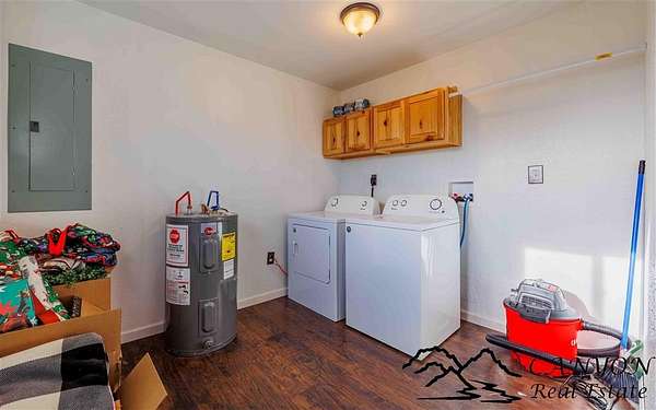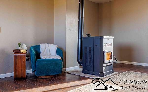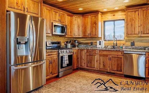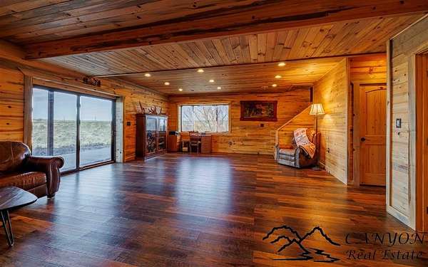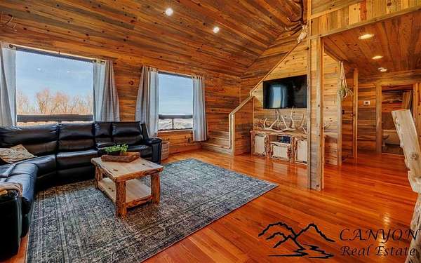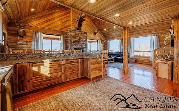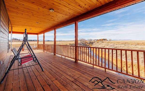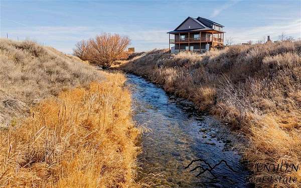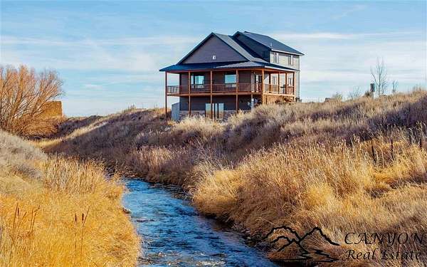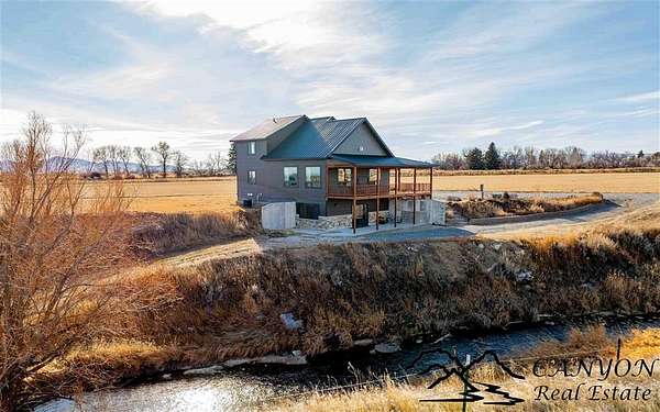 This exceptional creekside property offers a rare blend of privacy, productive ground, and high-end living just 15 minutes from Powell, 20 minutes from Cody, and within easy reach of Yellowstone National Park. The property includes 45 deeded acres with approximately 21 irrigated acres planted in alfalfa and watered by gated pipe, ideal for livestock or continued agricultural use. Nearly one mile of combined creek frontage--over half a mile along Alkali Creek on the north boundary and just under half a mile along an unnamed creek to the south--creates a peaceful setting rich with wildlife and framed by views of Heart Mountain, the Beartooths, and the Bighorns. Multiple potential building sites offer flexibility for future development or investment. The 3,300 sq. ft. main residence is new construction overlooking Alkali Creek. The kitchen features custom cabinetry, granite countertops, and new appliances, while the great room highlights an 18-foot ceiling, blue pine accents, hardwood floors, and a rock fireplace with gas insert. The primary suite includes a full bath, complemented by three guest bedrooms and two guest bathrooms with walk-in tile showers. A walk-out basement living room with pellet stove and large windows opens to the creek. A fully remodeled guest house completed in 2023 provides flexibility for guests, rental income, or multi-generational living. Opportunities like this seldom come available--experience the privacy, water, and views that define Wyoming living.
