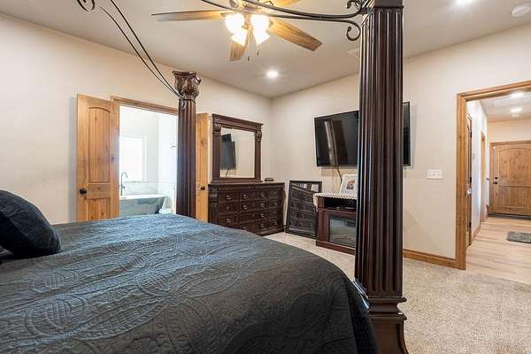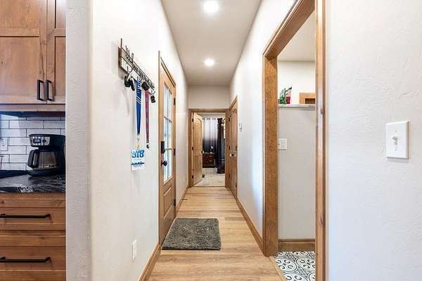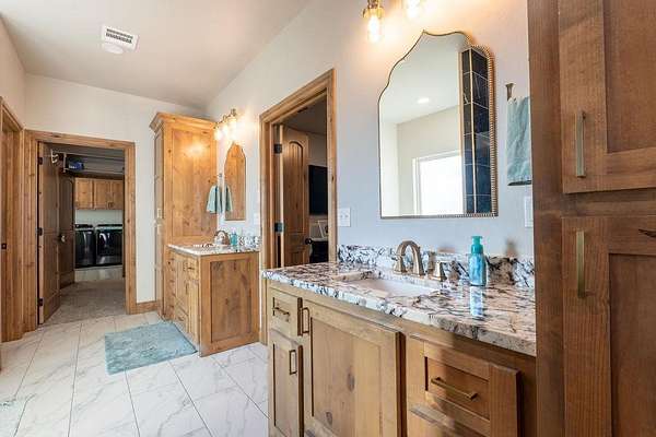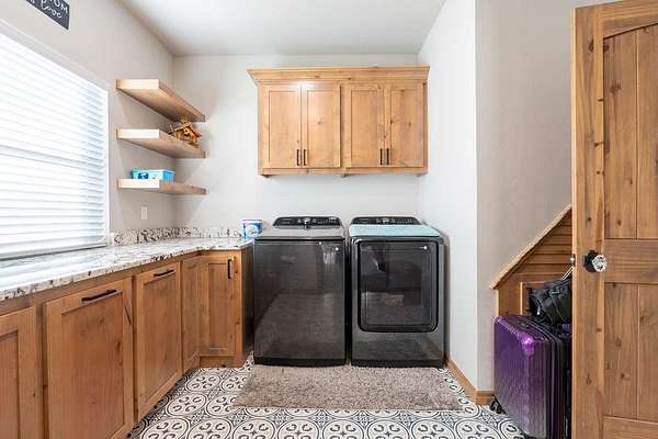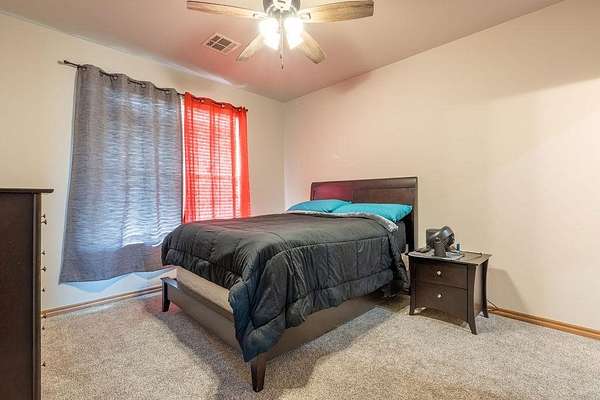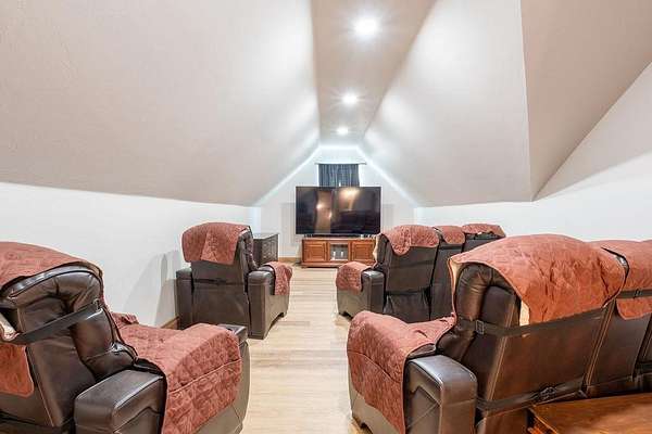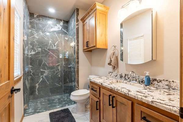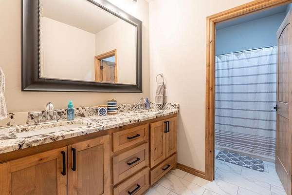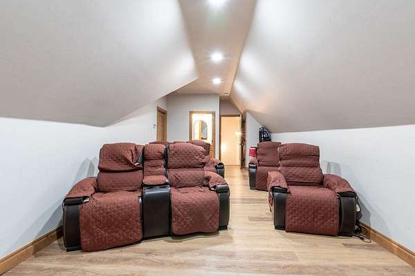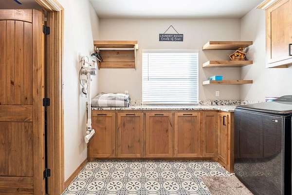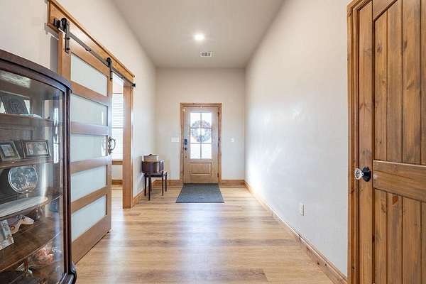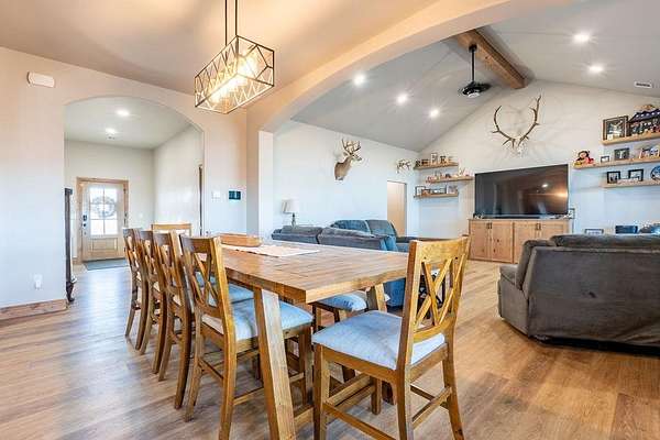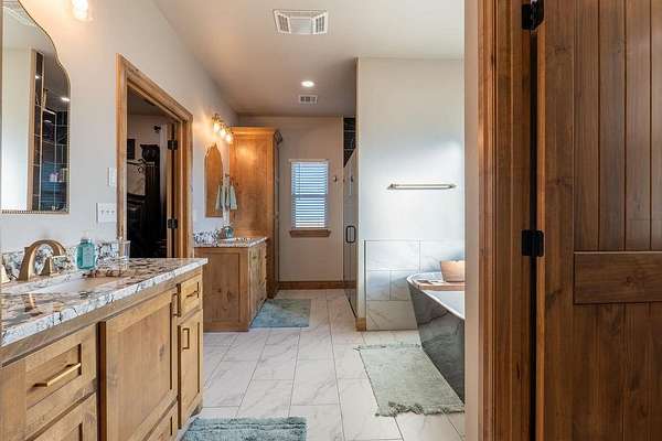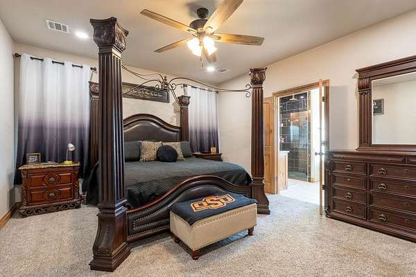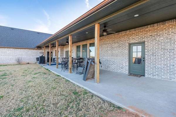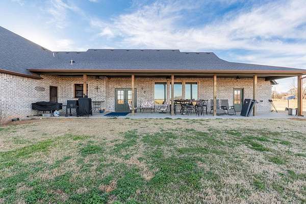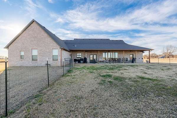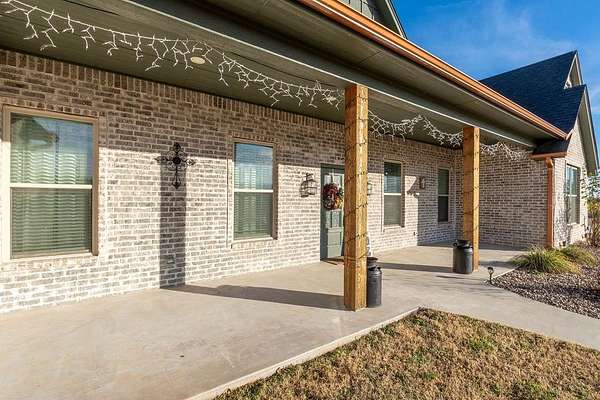 Prepare to enjoy this beautifully crafted 3700 plus sq ft home that rests upon 8.75 acres of land just northeast of Shawnee. As you pull into the driveway the copper guttering will catch your eye and you will begin to notice that this house is truly one of a kind. Walk in the home and discover the well thought out plan that includes 4 or 5 spacious bedrooms, 4 full baths, and multiple living areas. Enter the large kitchen area and take a look through the custom garage door style window that delivers a view of your nearly 9 acre property. Island seating, beautiful brick floors, chiseled edged, leathered granite fill the kitchen with a luxurious and custom feel. The formal dining area sits off of the kitchen and offers high ceilings for that large open area feel as well as seamless picture windows with remote blinds. The home comes with two ADA compliant primary suite options, one with a large custom soaking tub, walk in shower and double vanities. Continue through the house to discover a dog bath area, and a hidden bar. Walk upstairs, sit back an relax while you watch your favorite movie in the theatre room. The theatre room boasts a full closet and its own bathroom. Also included in the home is a Generac generator system, 220 v outlet on the back porch, floored storage room in the attic, oversized garage with 7.5 ft tall overhead doors, spray foam insulation and fiber optic internet. A covered back patio awaits you and your guests. The back patio area provides a spacious feel to grill, lounge and entertain. Outside the home is the 20x20 shop building, 20 x 26 attached carport with concrete floors and 110 electric with built in work bench. The east facing back porch along with the west facing front porch offer you the opportunity to watch the sunrise and sunset from your masterfully crafted home. Call today for a showing on this magnificent property.