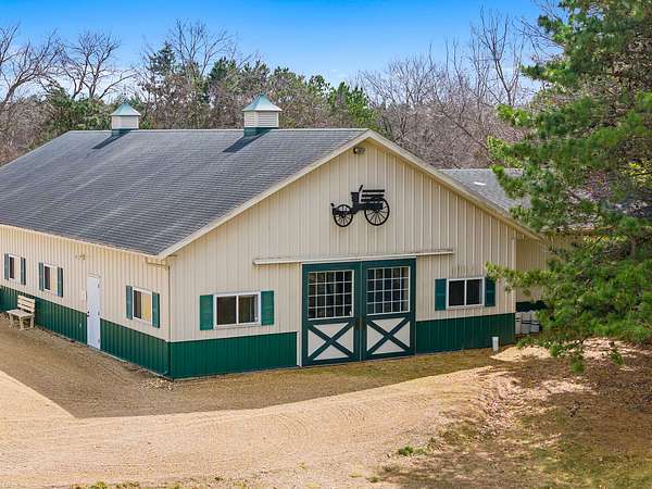 Welcome to your private slice of country living in Prairie du Sac on 44 stunning acres! This exceptional property offers the perfect blend of luxury and rural lifestyle. The 3BR, 4BA ranch boasts over 3,500 sq ft with an open layout, 2 fireplaces, spacious mudroom, and screened porch to take in the views. The primary suite features a large walk-in closet, soaking tub, and walk-in shower, plus an additional en suite for guests. Finished lower level includes 2 bonus rooms (ideal for office/den), a large rec room, and game room built for entertaining.Outside, enjoy a saltwater inground heated pool with a charming 140+ year-old pool house full of character. Equestrian and hobby enthusiasts will love the 6-stall horse barn, 38×42 heated shop, and massive 60×90 shed—perfect for storage or potential indoor riding arena. This property offers space, versatility, and unmatched lifestyle—more than a hobby farm, it’s your dream country escape!