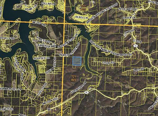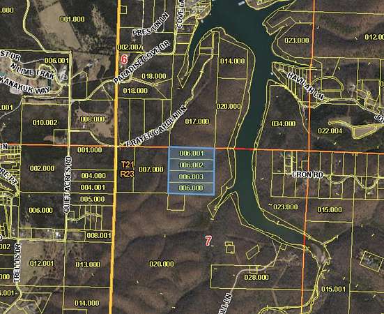 From Hwy 13 south of Lampe at Dogwood Canyon, take Hwy 86 West to right on Trace Hollow Rd. Turn right on 86-63/Trellis Dr. Turn right on 86-63/Quiet Acres Rd. Turn right on Prayer Garden Ln gravel road (gravel road ends and turns to dirt. Someone has cabled across the road, Must Hike on foot through forest to get to property. GIS with GPS app suggested to find the lot lines.
