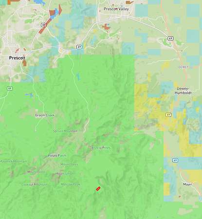 Est $2,917/moThe 20.66-acre Crystal Lode Mining Claim is a once-in-a-lifetime opportunity to own a patented inholding completely surrounded by the Prescott National Forest in the scenic Bradshaw Mountains of Arizona. Located just 12 miles south of Prescott and 7 miles west of Mayer, this secluded retreat offers true off-grid privacy behind a locked gate with a USFS Special Use Permit easement, yet remains easily accessible from both Prescott and Phoenix via Poland Junction Road to Five Corners to Forest Road 22. Drilled and capped well, certificated water rights to Seaton Spring, 6,400-6,720' elevation on Pine Creek to Big Bug Mesa.