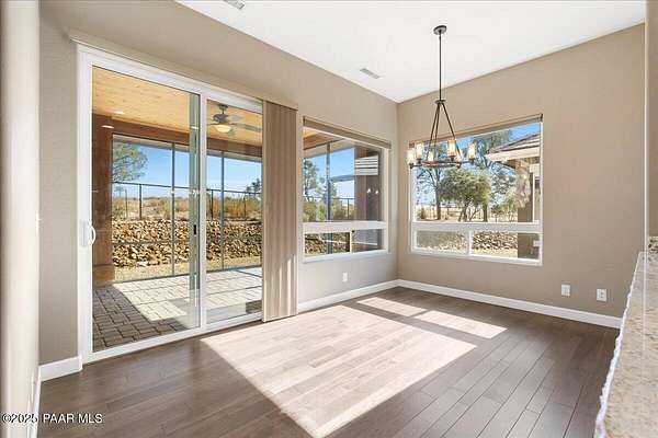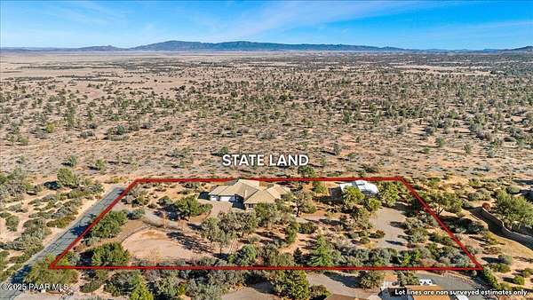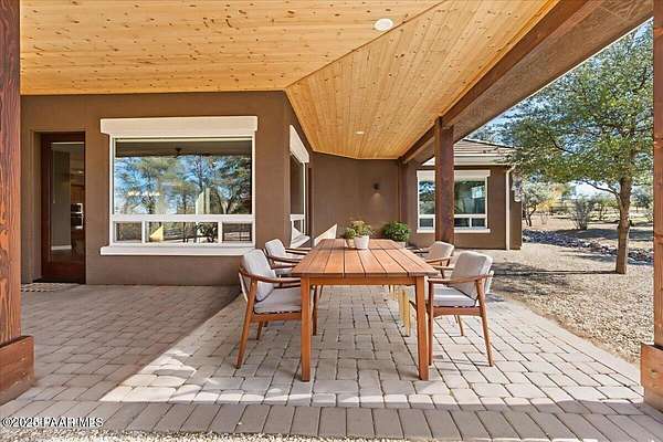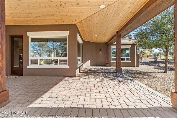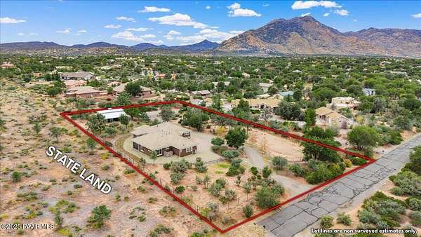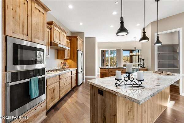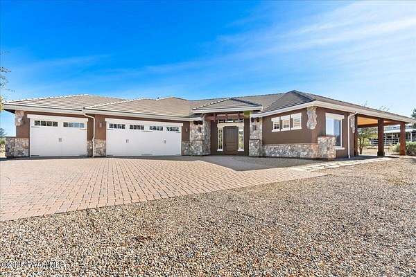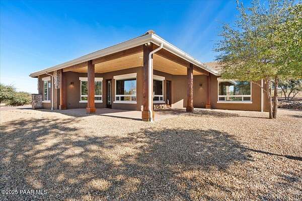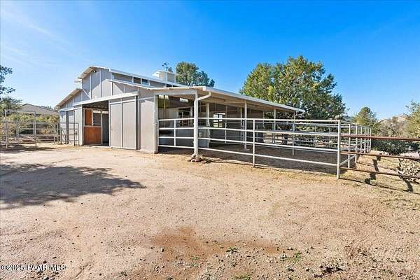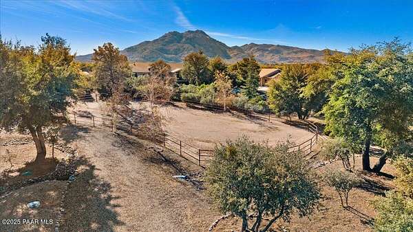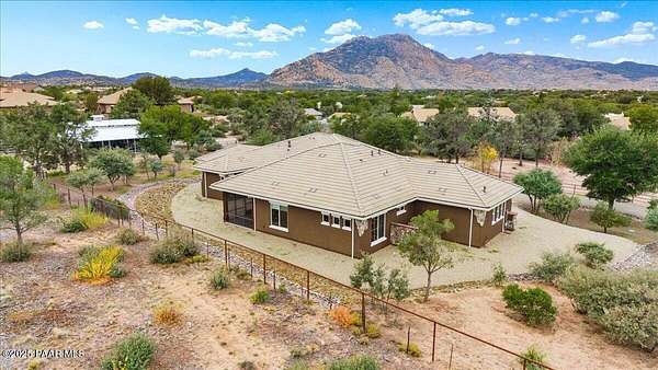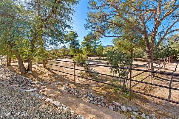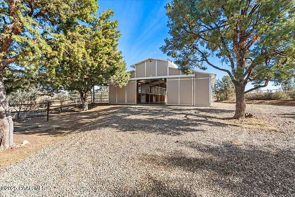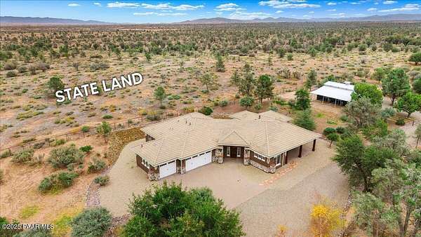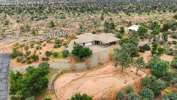 Granite Oaks, Williamson Valley, 2+ Acre Horse Property. No HOA, backs to State Lands, views of Granite Mountain, underground utilities including a share in a private water company w/fire flow/hydrants. 3,100 sq. ft. Crystal Creek Custom Home completed in 2020 with 900 sq. ft. sealed floor 3 car garage w/built-ins and overhead storage, stubbed out for heat on mature treed and natural landscaped property. This beautifully appointed 3 bedroom home all with on suites, includes Multi Use Room, additional 1/2 bath, tons of storage, mudroom, laundry w/sink, includes washer/dryer and custom cabinetry. Open great room with stone fireplace, 3/4'' hickory plank flooring, dining, kitchen with custom hickory cabinets, stone countertops, gas cooktop, bar, 2 pantries. Enjoy Breakfast nook and screened-in porch along with massive living room porch with views of Granite Mountain. 2-Zoned HVAC Systems, Fire Sprinklers, Tankless Water Heater, Solid Hickory Interior 8' Doors. If that is not enough; your horses will enjoy 4 Stall 1,351 sq. ft. barn w/raised center aisle, rubber mats thru-out, auto water, tack room, feed storage, turn outs, arena. Property has pipe fencing with no-climb on perimeter, cross pipe fencing. Access private gate to the state lands on Deep Well Ranch. If you do not have horses you can convert the barn to carport, workshop, RV garage or let your imagination run.
