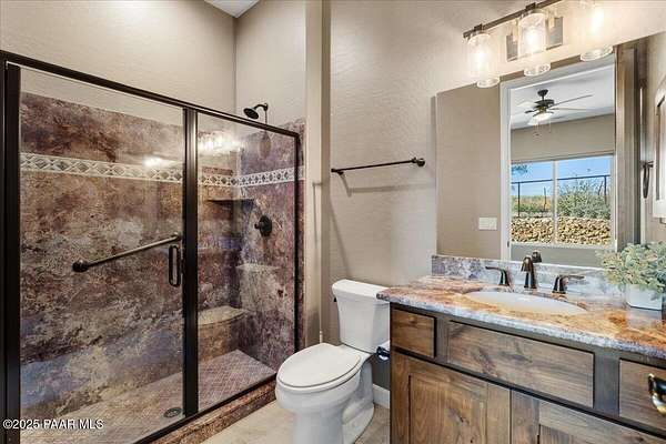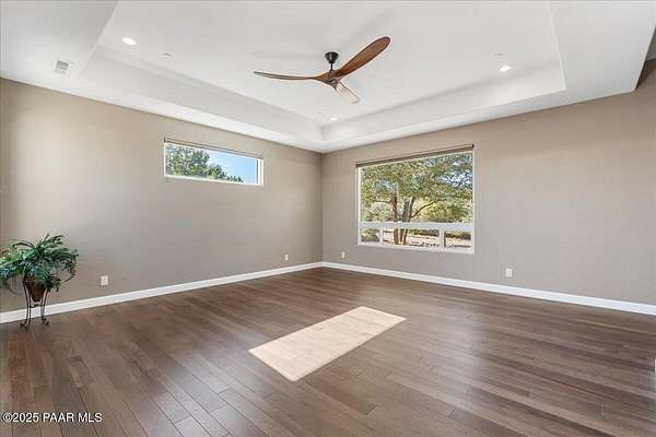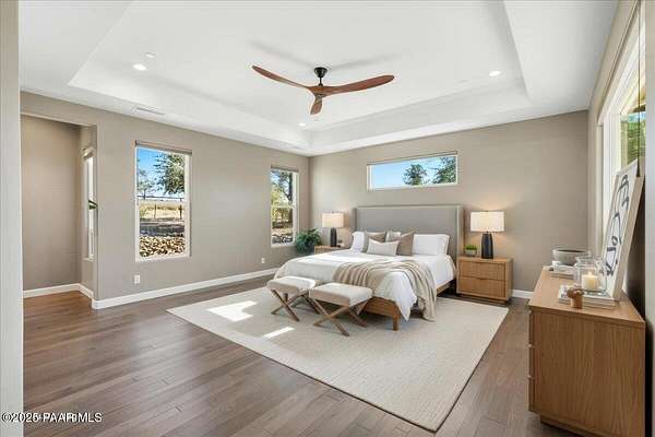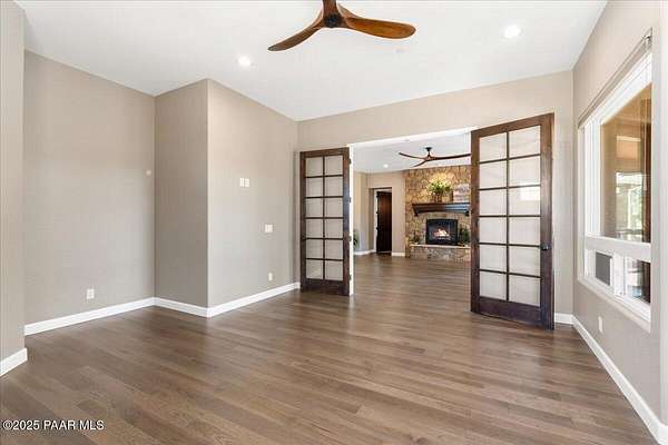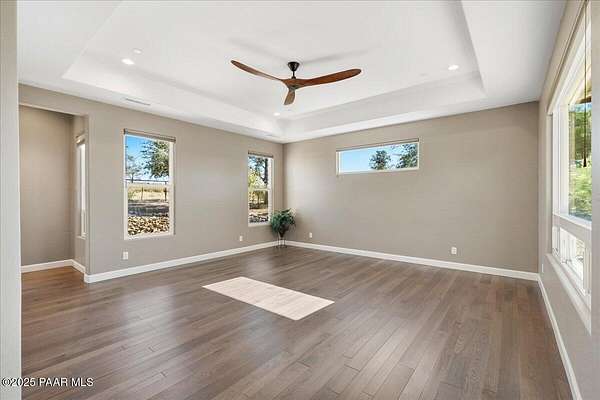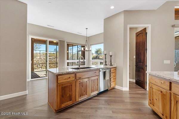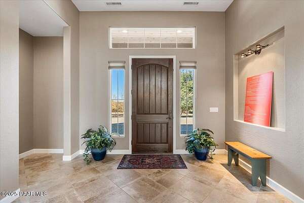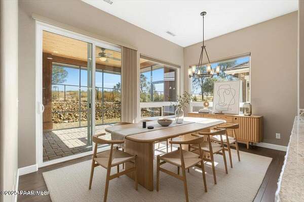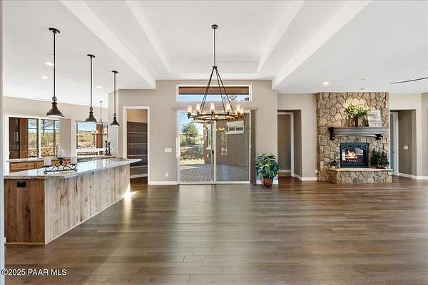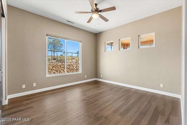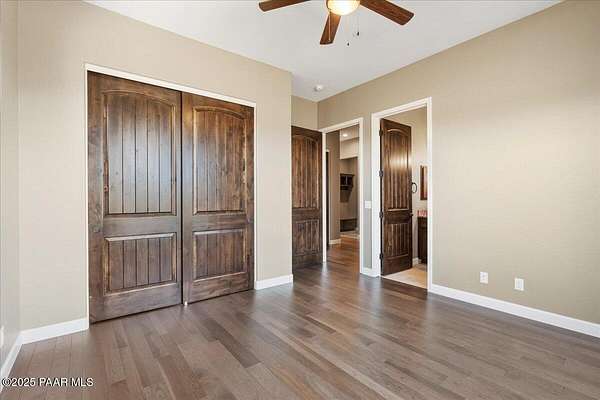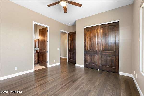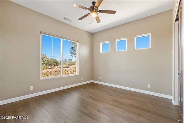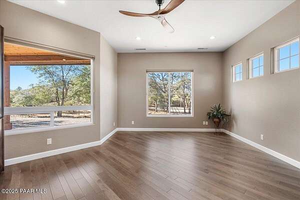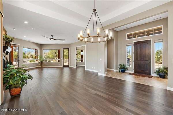 Granite Oaks, Williamson Valley, 2+ Acre Horse Property. No HOA, backs to State Lands, views of Granite Mountain, underground utilities including a share in a private water company w/fire flow/hydrants. 3,100 sq. ft. Crystal Creek Custom Home completed in 2020 with 900 sq. ft. sealed floor 3 car garage w/built-ins and overhead storage, stubbed out for heat on mature treed and natural landscaped property. This beautifully appointed 3 bedroom home all with on suites, includes Multi Use Room, additional 1/2 bath, tons of storage, mudroom, laundry w/sink, includes washer/dryer and custom cabinetry. Open great room with stone fireplace, 3/4'' hickory plank flooring, dining, kitchen with custom hickory cabinets, stone countertops, gas cooktop, bar, 2 pantries. Enjoy Breakfast nook and screened-in porch along with massive living room porch with views of Granite Mountain. 2-Zoned HVAC Systems, Fire Sprinklers, Tankless Water Heater, Solid Hickory Interior 8' Doors. If that is not enough; your horses will enjoy 4 Stall 1,351 sq. ft. barn w/raised center aisle, rubber mats thru-out, auto water, tack room, feed storage, turn outs, arena. Property has pipe fencing with no-climb on perimeter, cross pipe fencing. Access private gate to the state lands on Deep Well Ranch. If you do not have horses you can convert the barn to carport, workshop, RV garage or let your imagination run.
