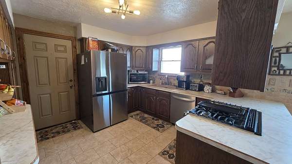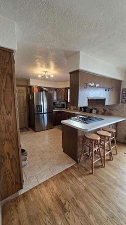 5 bedroom 2 bath bi level home. Great lay out within the house. Large En suite on the upper level, 16x15 bedroom and bathroom is a 9x10 with a walk in closet. There is a second bedroom on the upper level of the house. 3 bedrooms on the main level of the home, one is on the smaller size that would make a great office or pantry space if the bedroom wasnt needed. On the lower level is a beautiful family/great room. Off that room is the access to the basement which is 43x22 for a ton of storage or a bonus room. 2 car attached garage and a large shed for storage. a 27ft in diameter 5 ft deep pool was just put in last year. This house has natural gas, back up generator and whole house A/C.