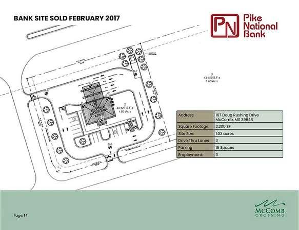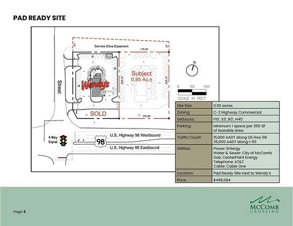 For sale is a prime 55.75 acres of commercial land parcel in McComb, MS, strategically located just off the I-55 south exit for $4,500,000. This site offers exceptional visibility and high traffic counts, making it ideal for new businesses. Zoned as an Opportunity Zone, it promotes investment and growth, with direct access to I-55 ensuring excellent exposure. Comprehensive traffic data is readily available, and all necessary utilities are accessible, facilitating easy development. Situated near existing businesses and amenities, this land presents a fantastic opportunity for retail, restaurants, and service-oriented ventures. Don't miss the chance to establish your presence in this thriving area-contact us today for more information or to schedule a viewing!