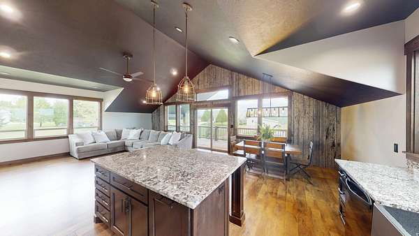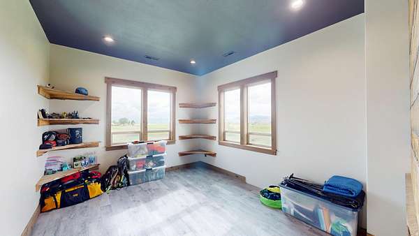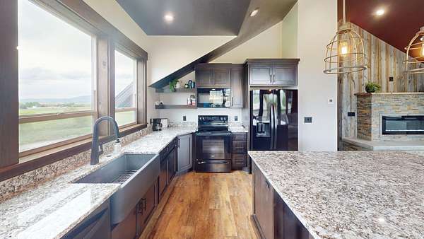 Perched atop a gently rolling hill and surrounded by sweeping mountain views in every direction, this custom-built home is a rare find. Nearly every window frames a postcard-worthy vista, while the 5.5-acre property offers serenity, space, and sustainability. A year-round stream flows peacefully alongside a scenic pond-perfect for enjoying quiet evenings and watching sunsets over the western range. Water rights for irrigation and a natural spring provide a sustainable, culinary-grade freshwater supply. Designed with both comfort and utility in mind, the lower level features an oversized 5-car garage-ideal for RVs, recreational toys, and workshop space. It's equipped with wiring for a mechanical lift and a 12+ foot high door for your largest vehicles. Upstairs, an expansive covered balcony invites you to start your mornings with sunrise coffee or unwind with evening grilling. Inside, rustic charm meets thoughtful design, with vaulted ceilings, a stunning stone fireplace, and walls clad in locally sourced, reclaimed barn wood. The spacious primary suite includes dual vanities, a walk-in shower, and a generous walk-in closet. The lower level also offers a full bath and a flexible office space-ideal for a guest suite, gym, hobby room, or lounge. A separate storage room with built-in shelving and a roll-up door provides ample space for outdoor gear and lawn equipment. Just 3 miles from the heart of picturesque Preston, Idaho and 23 miles to Logan, Utah, you'll enjoy the peace of country living with the convenience of nearby amenities. Several furnishings and key features convey, including a propane tank, water softener, sofa, kitchen table and chairs, barstools, and washer/dryer-making this move-in ready. This is more than a home-it's a lifestyle. Call the listing agent today to schedule your private tour of this one-of-a-kind sanctuary.