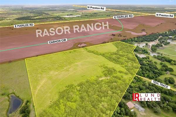 Some Trees, No HOA, No Restrictions, No Easements. Utilities Available. Water Line at Preston Lakes and North at Rasor Ranch. Sanitary Sewer is at the North Boundary.